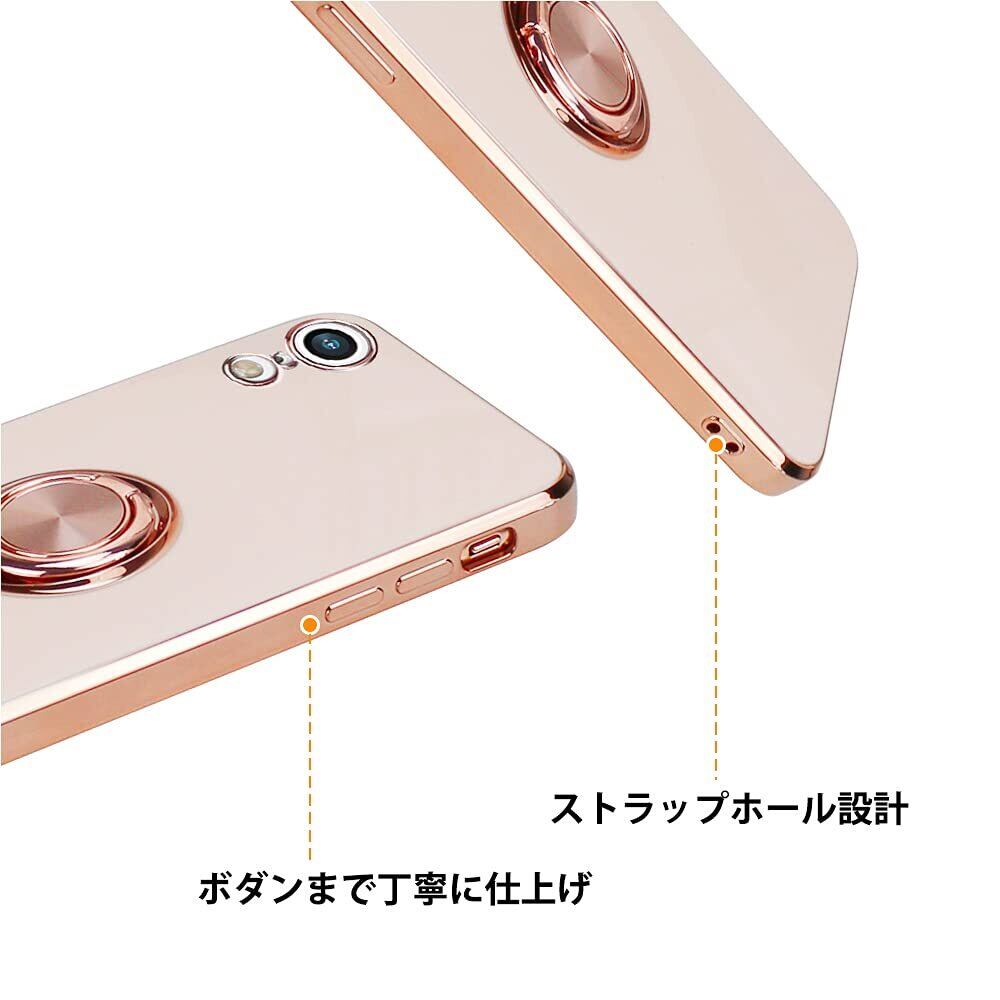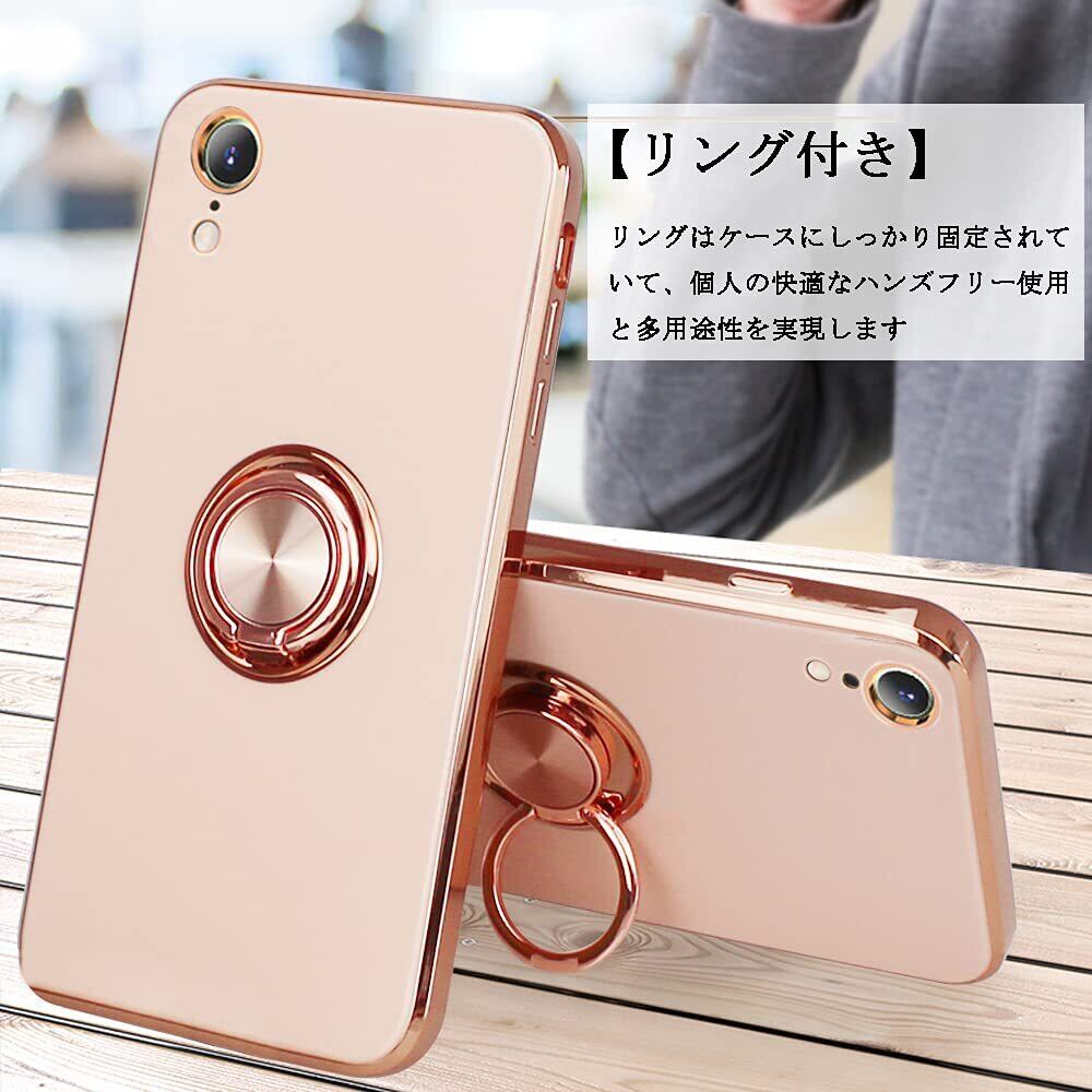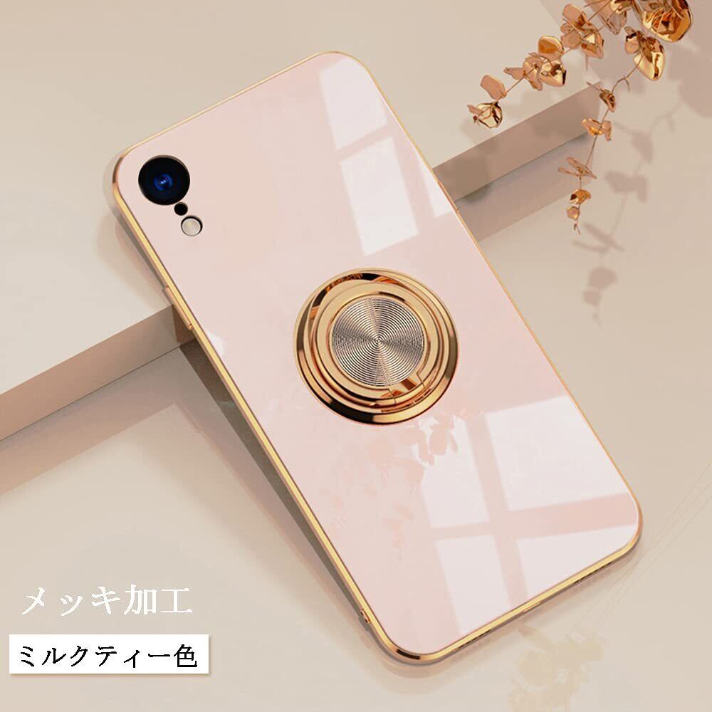【努力特価】iPhone XR ケース リング付き メッキ加工 レンズ保護 tpu ソフト ストラップホール付き 耐衝撃 スリム おしゃれ スマホケース 携帯カバー アイフォンXr ケース (iPhone XR ミルクティーの色)
