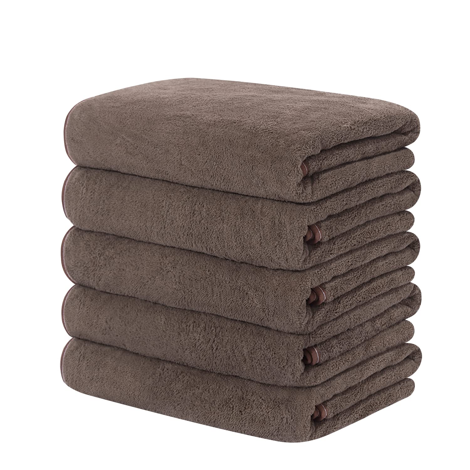 バスタオル マイクロファイバー 大判 60X120cm ホテル仕様 タオル ふわふわ 吸水 速乾 耐久性 5枚セット (ブラウン)