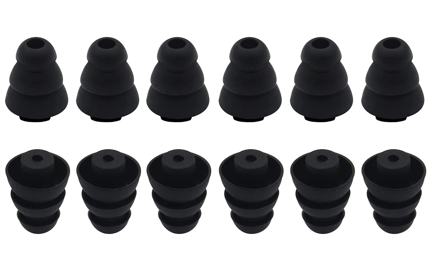 A-Focus トリプルフランジ イヤーピース SE215等のSHU-REイヤホン用、ER4SR/XR等のEty-motic Research用、Klip-schイヤホン用、Wes-toneイヤホン用 3フランジイヤーチップ 3フランジイヤーパッド シリコン製 黒 Sサイズ6ペア (S)