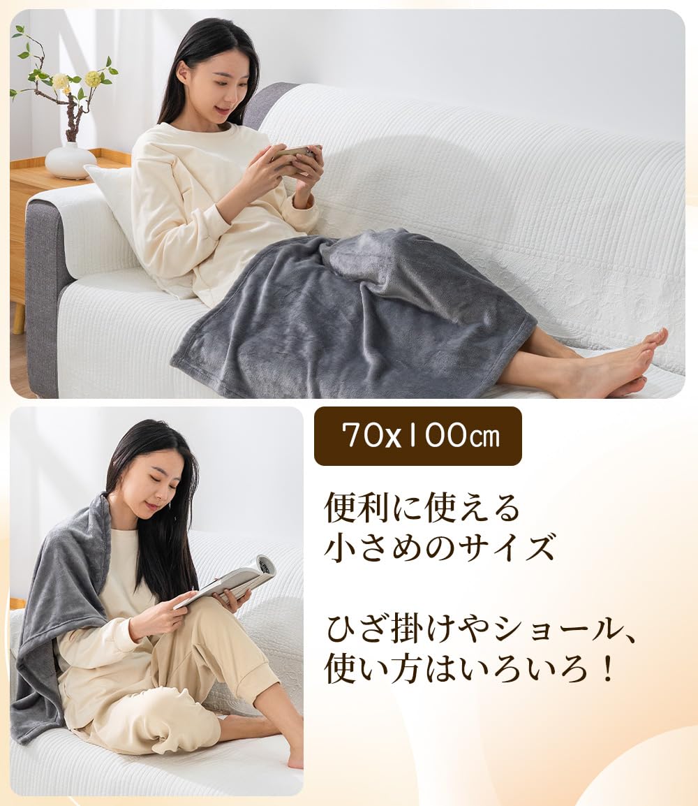 Marine Moon 毛布 膝掛け ブランケット 小さめ 持ち運びやすい 収納袋付き コンパクト ハーフケット フランネル ふわふわ 柔らかい 暖かい 洗える オールシーズン 薄手 軽量 グレー 70?100cm