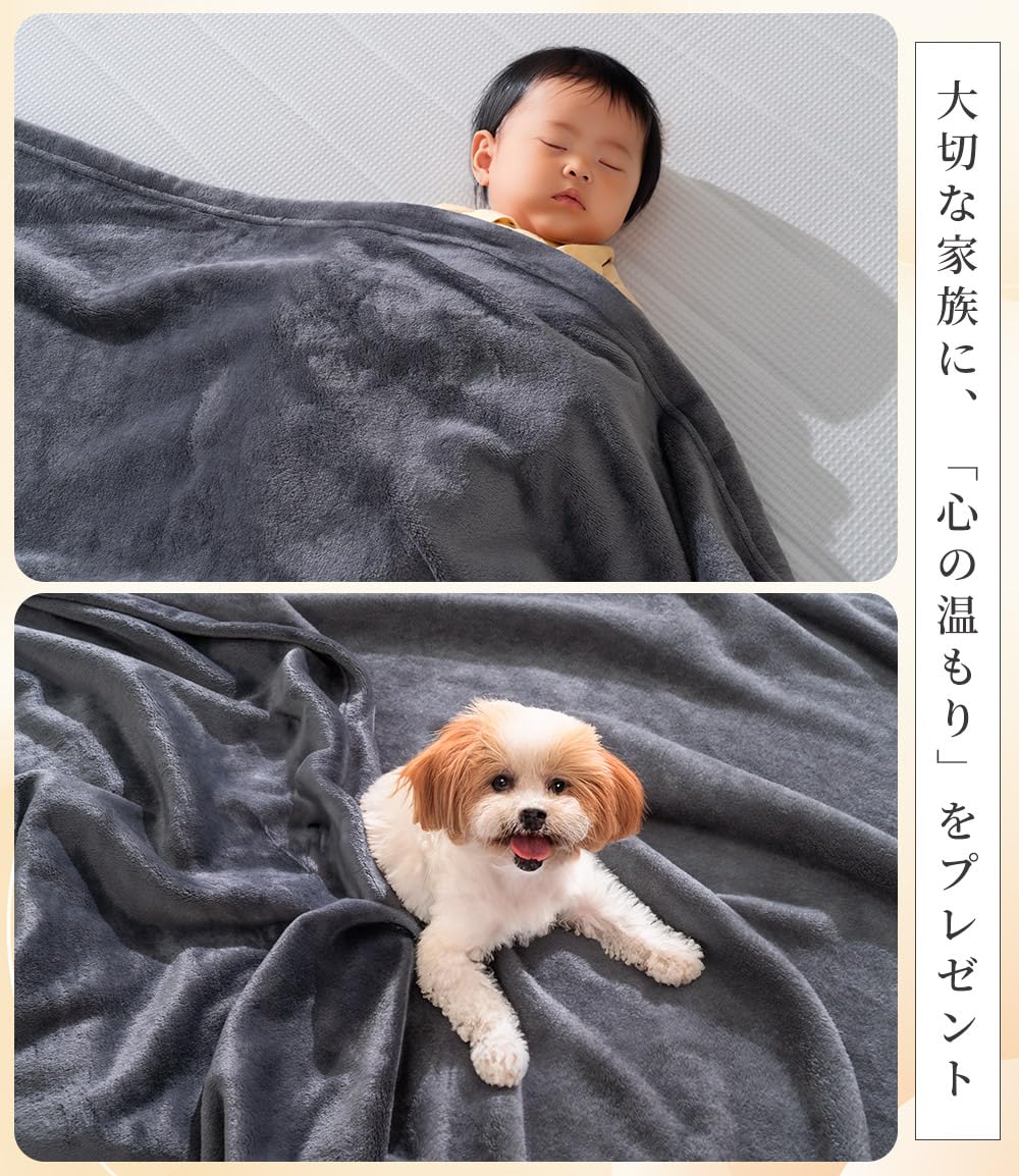 【しっとりとした肌触り】極細繊維の柔らかさと美しい光沢感が特徴。触れるたびに心地よさを実感できる、まるで包み込まれるようなふわふわ毛布です。