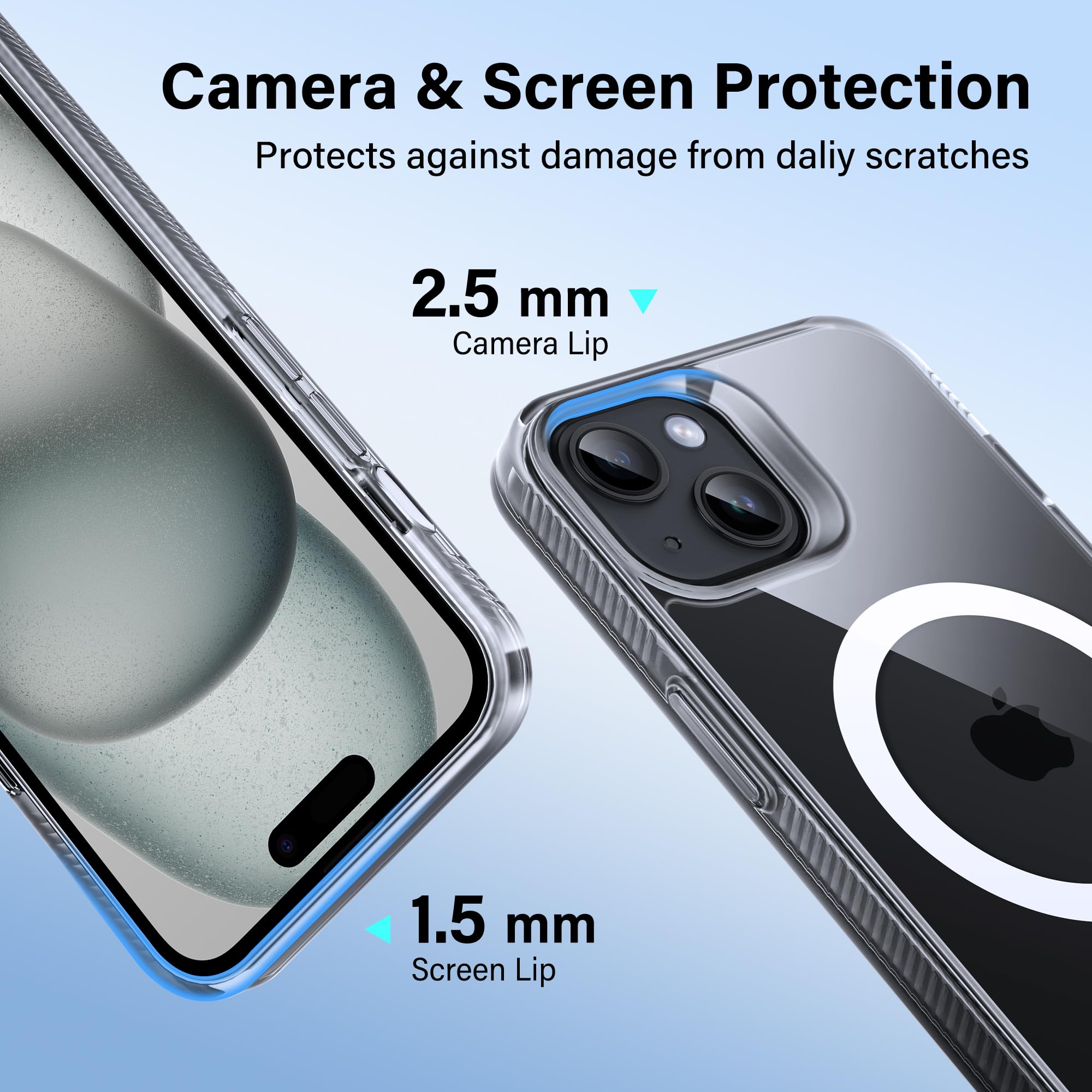 Supdeal iPhone 15 ケース MagSafe対応 クリア カバー 透明な電話 滑り止め 黄変しない 米軍規格 耐衝撃 耐久性 カメラ保護 頑丈な磁気 ワイヤレス充電 クリア アイフォン 15 ケース 6.1 インチ (透明)