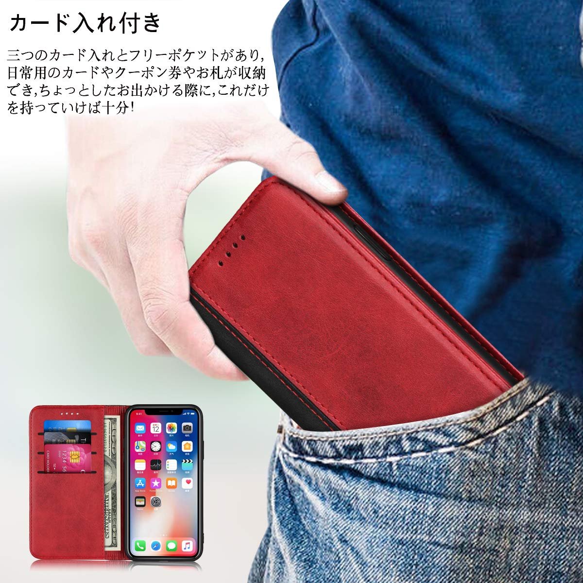 【新着特価】AQUOS sense SH-01K ケース 手帳型 スタンド AQUOS sense SHV40 ケース AQUOS sense lite SH-M05 手帳型ケース AQUOS sense lite ケース アクオス センス ケース 手帳_iCovercase_ 適用 内蔵マグネット 携帯カバー スタンド機能 カバー 落ち着いた色 耐衝撃 2色組合せ レトロ レッド
