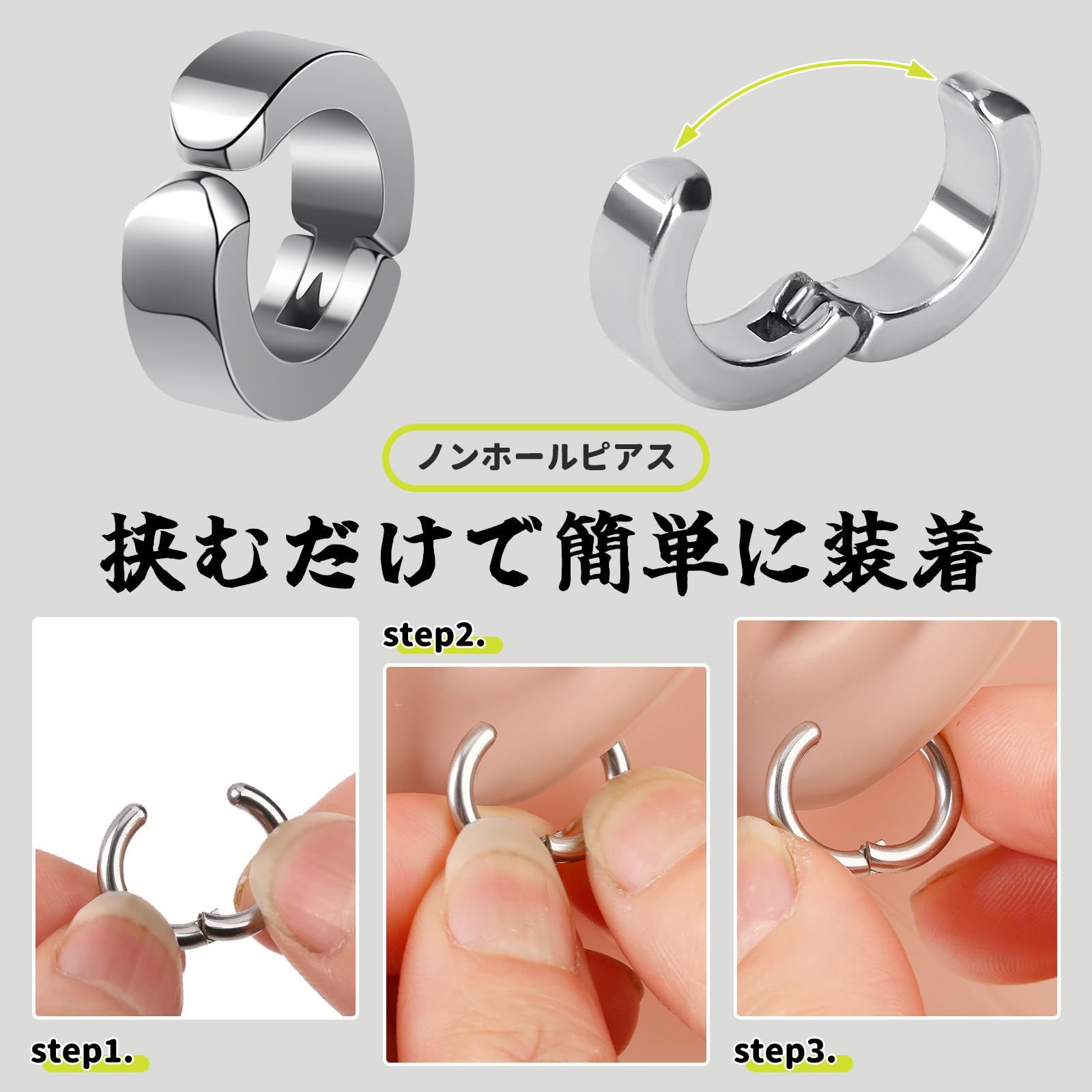 イヤリング イヤーカフ メンズ フェイクピアス ノンホールピアス ピアスに見えるイヤリング メンズ フープ ステンレス製 男女兼用