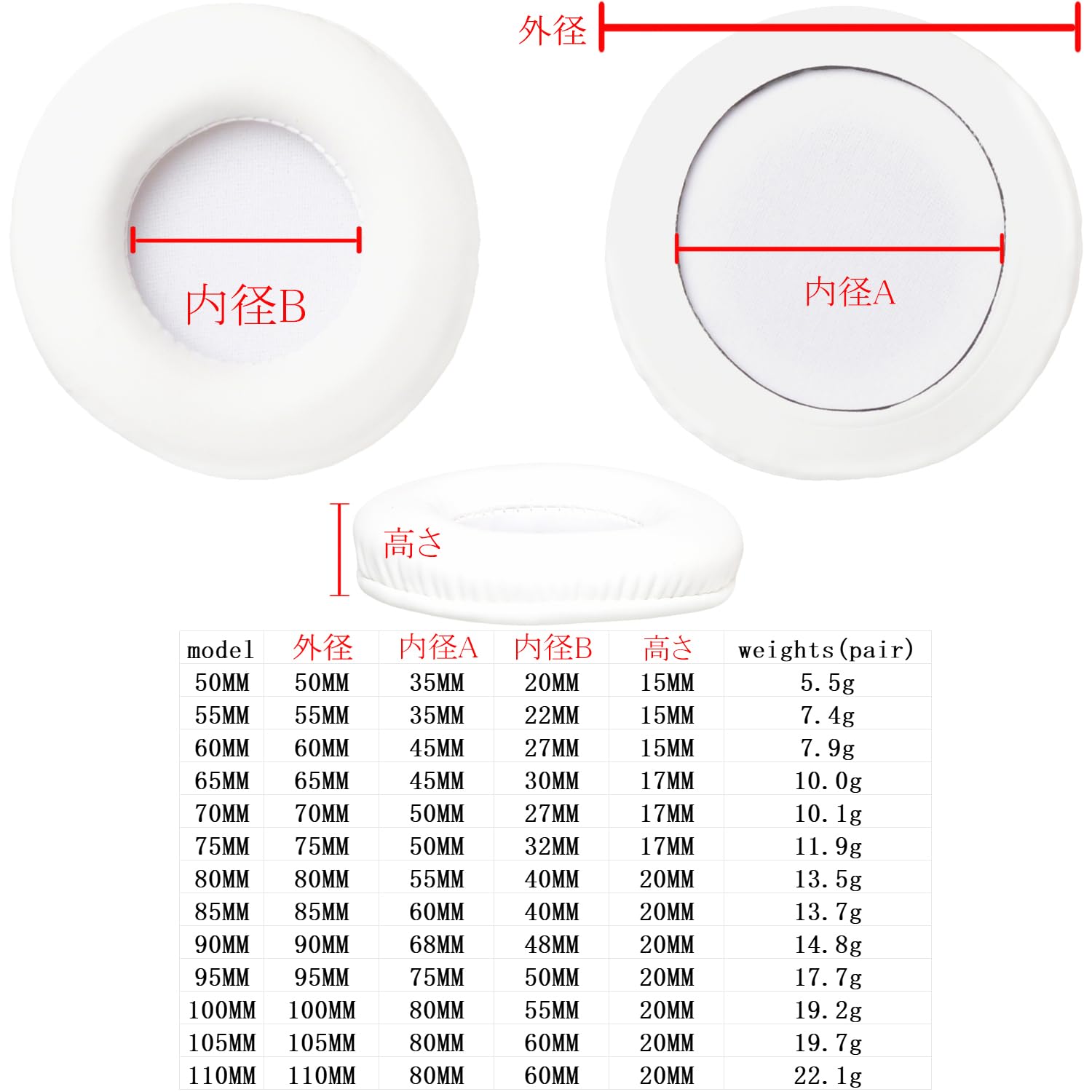 【対応機種】50mm white イヤーパッド 交換用ヘッドホンパッド 耳パッド イヤークッション