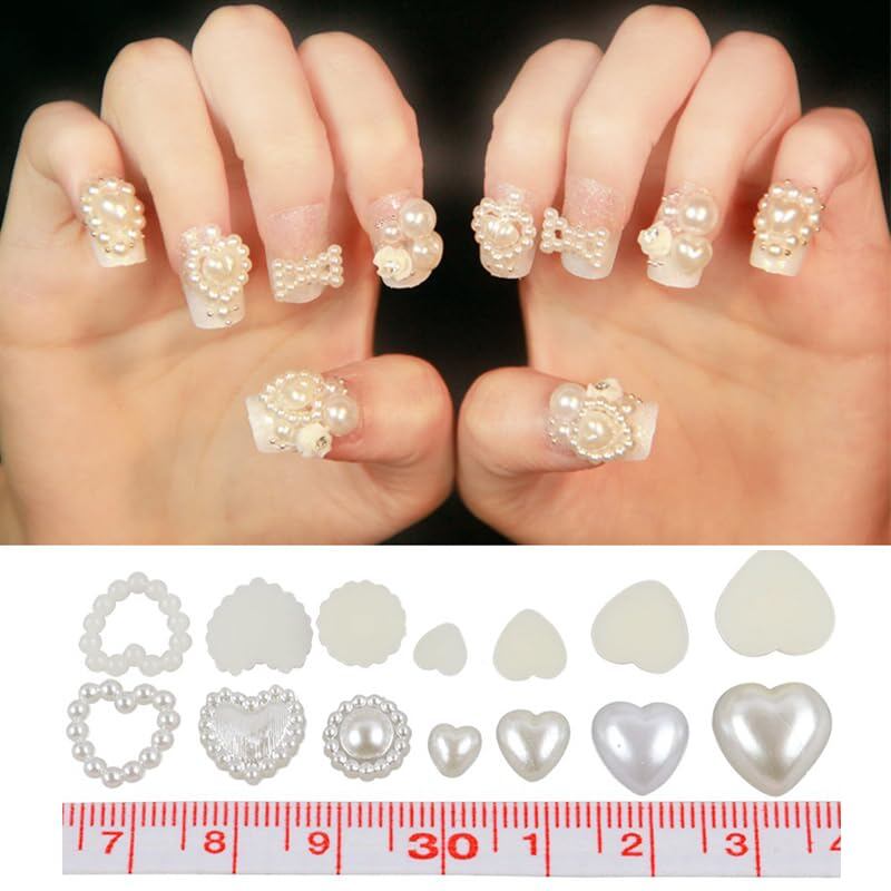 【パッケージ内容】ネイルパーツ約460個、おしゃれなハート型のネイルパールセットです。立体的なネイルアートにぴったりです。エレガントで上品なネイルを作りたい時に欠かせない。