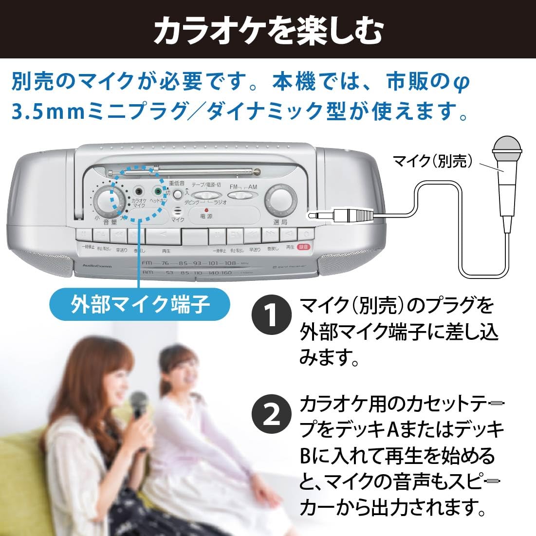 【2023最新】オーム電機AudioComm ラジカセ ダブルラジカセ ラジオ カセットプレーヤー ポータブル マイク内蔵 カラオケ 重低音強調 ワイドFM ダブルラジオカセットレコーダー AM/FMステレオ RCS-571Z 03-5012 OHM