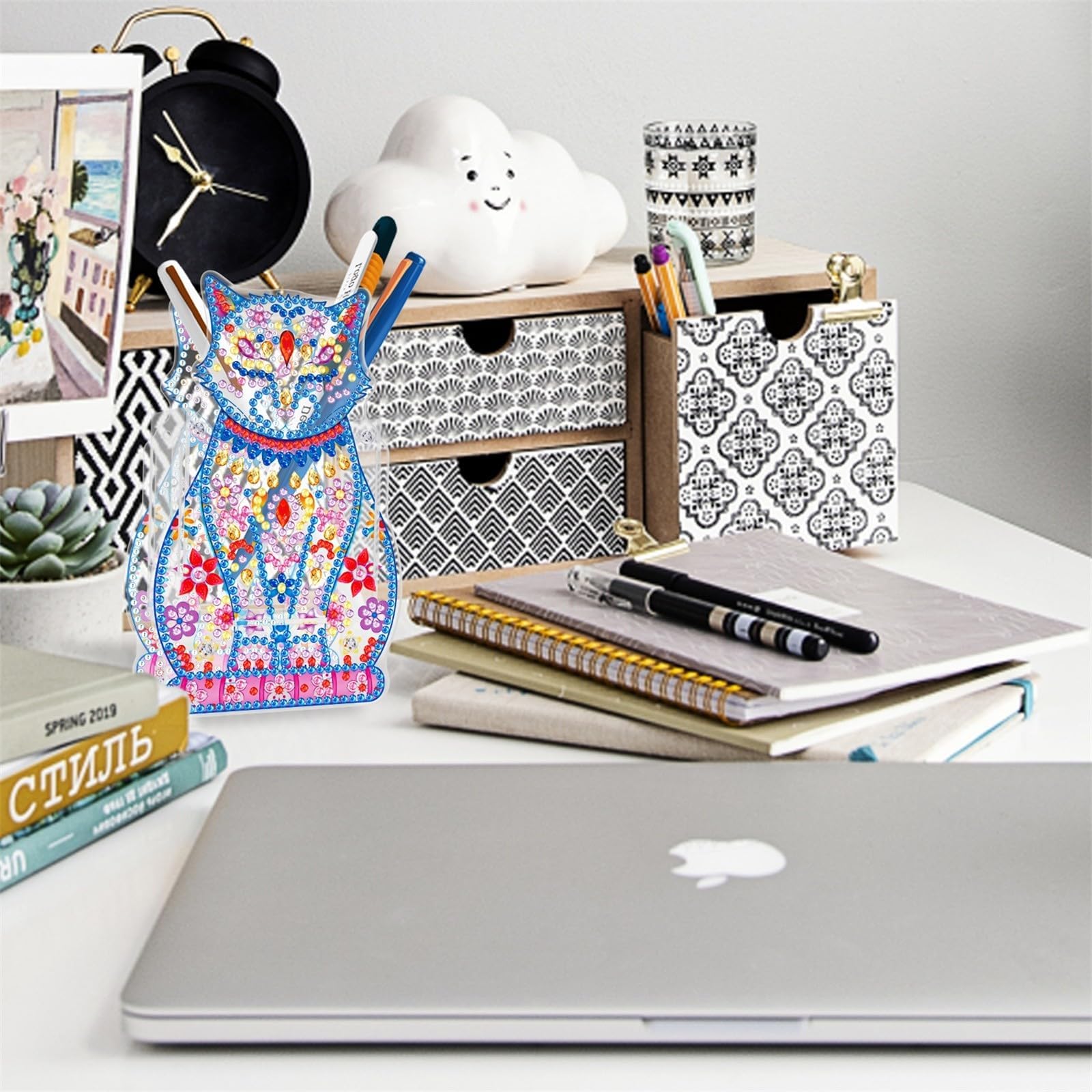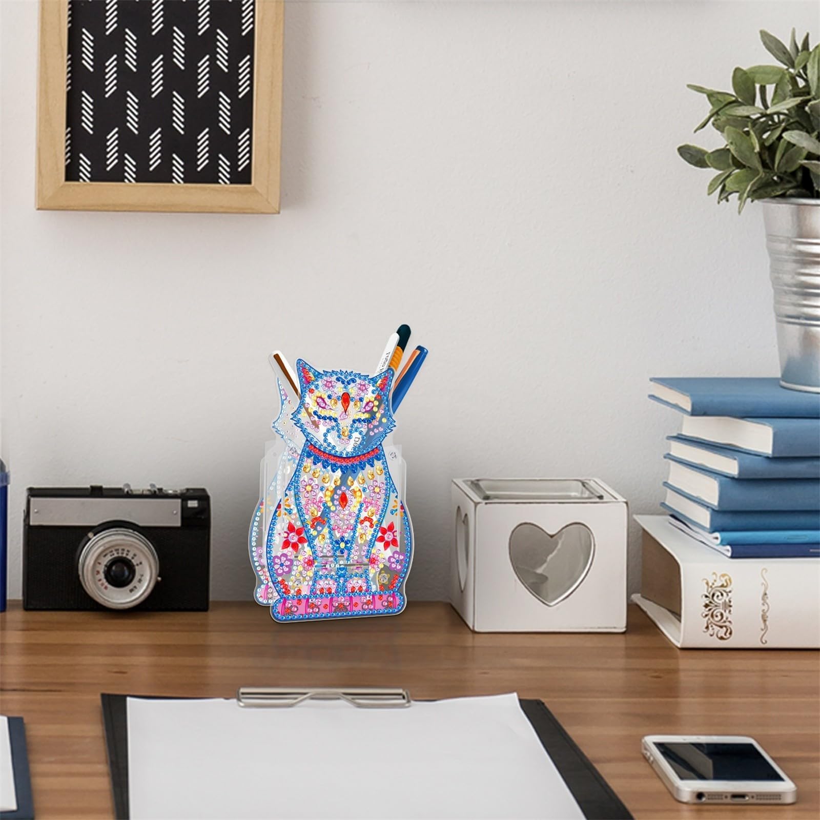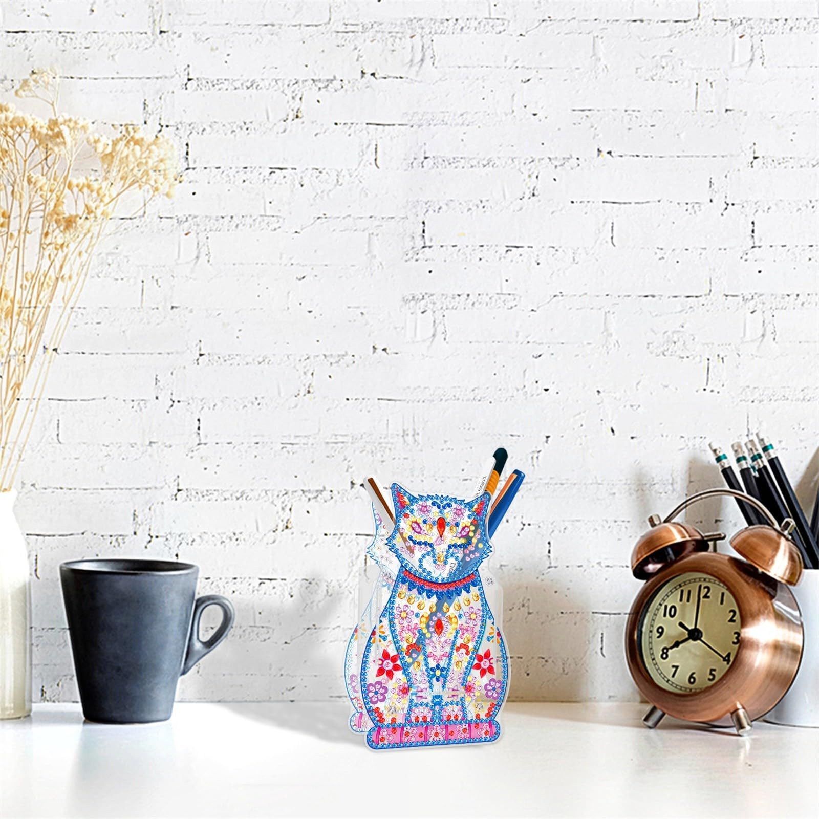 Kritlife ダイヤモンドアート キット ペン立て ペンホルダー ペンスタンド 5Dダイヤモンド塗装キット 子供 大人DIY手芸キット分類箱 小物分類卓上収納 文房具 化粧品 収納 贈り物 飾り物 (猫)