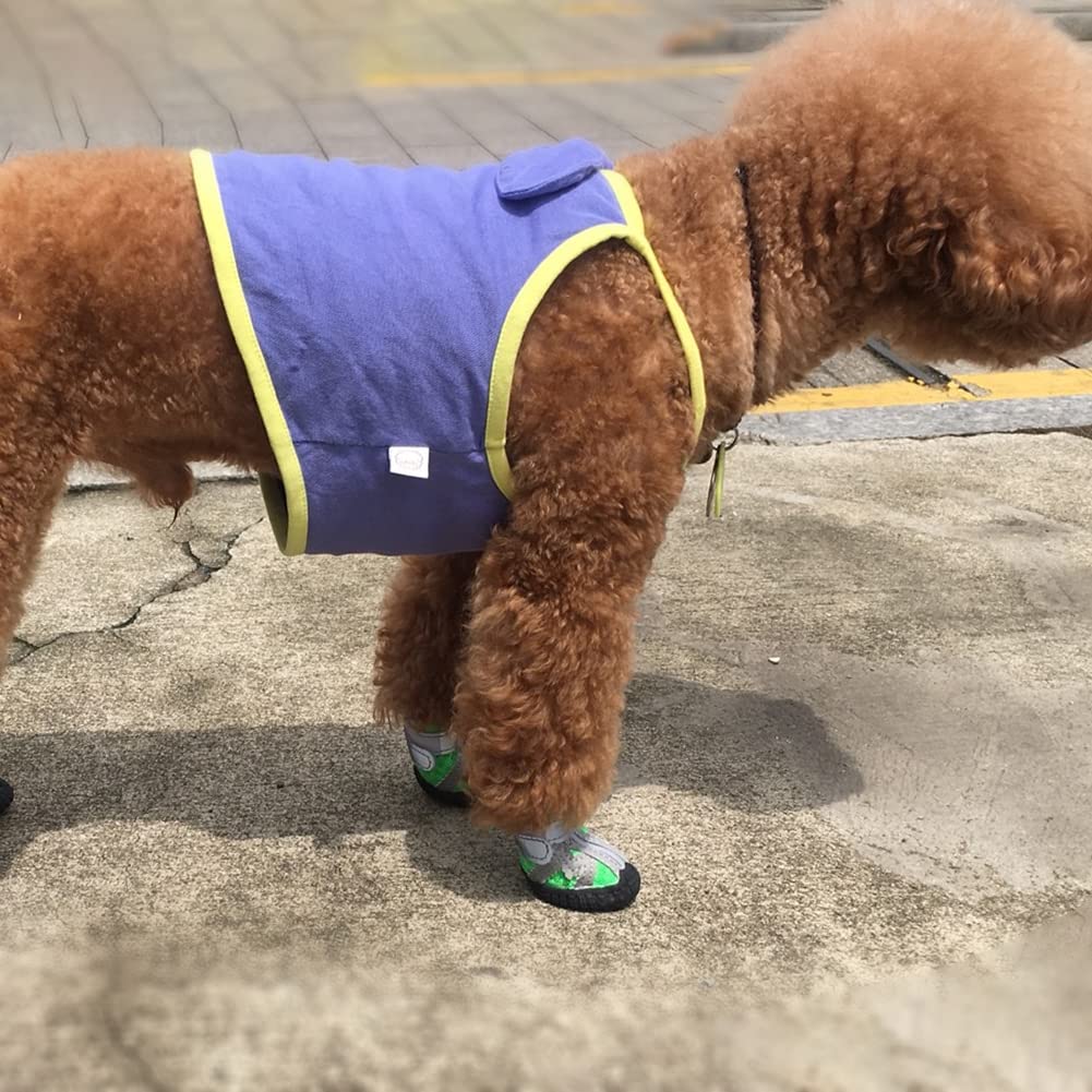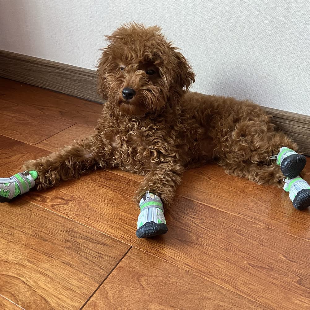 PET 犬用靴 ドッグブーツ ドッグシューズ 犬用シューズ 犬靴 レインシューズ 肉球保護 滑り止め 汚れ防止 夜間反射テープ付き 小型犬 中型犬 通気 お出かけ お散歩 4個入り(グリーン 1#)