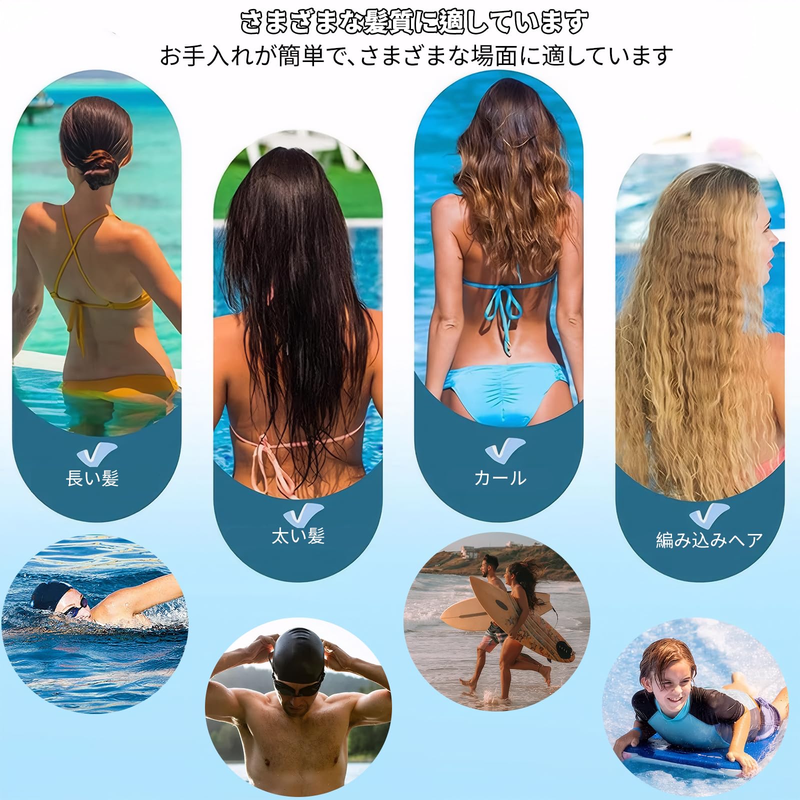 【様々な頭囲に適しています】: 柔らかいシリコン素材で作られており 弾力性があり 頭囲の異なる成人男性と女性に適しており ぴったりフィットし 滑りにくいです