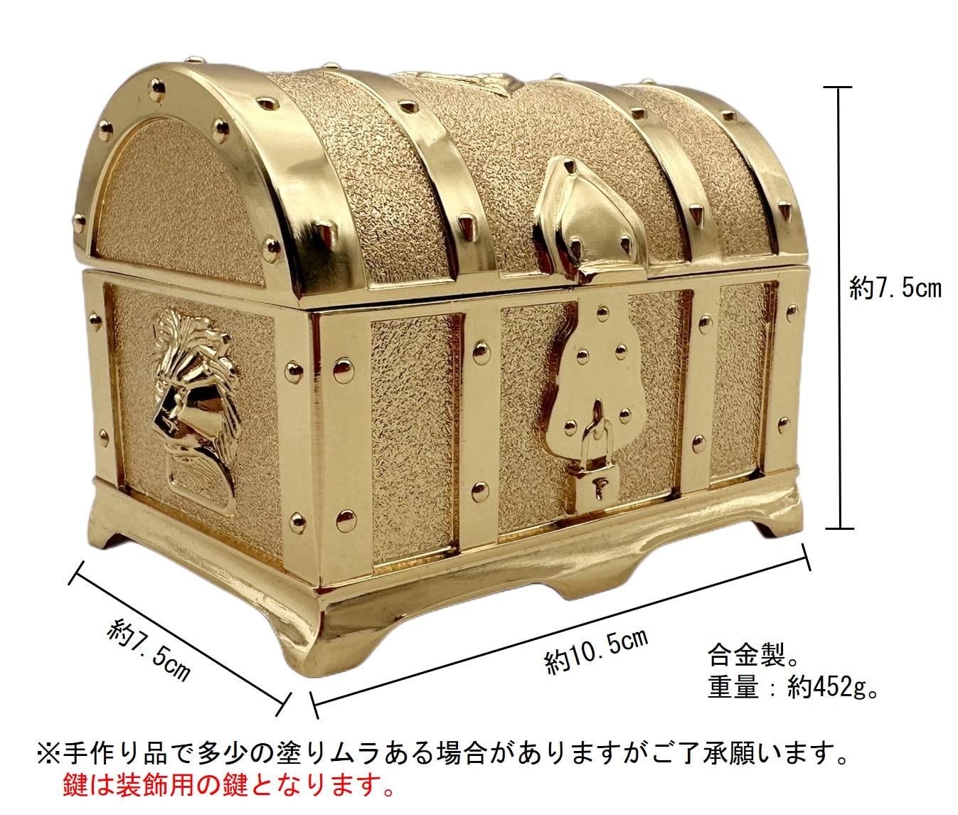 アンティーク調 合金製宝箱 合金ボックス ケース 海賊宝箱 収納箱 小物入れ 宝物入れ 宝箱の宝石箱 アクセサリー ヴィンテージインテリア 雑貨 置物 (中サイズ(金色))