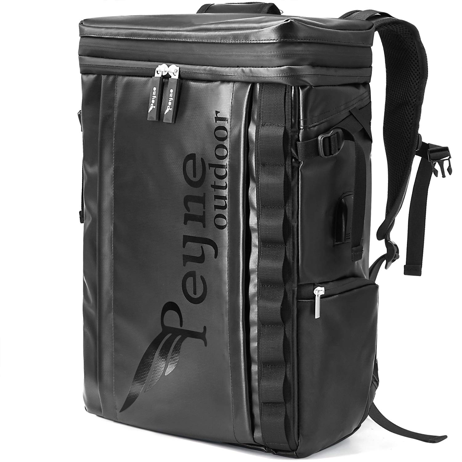 【数量限り】[PEYNE] リュック メンズ 大容量 バックパック - 完全防水 リュックサック,2層式 拡張機能 スクエア スクエアリュック 靴/弁当収納 スクエアバックパック キャンバス リュック,A4収納 多ポケット USBポート付き 15.6インチ PC ビジネスリュック,40L outdoor 通勤 修学 旅行 学生 ブラック バッグ 多機能 通気性 黒 スクエアリュック