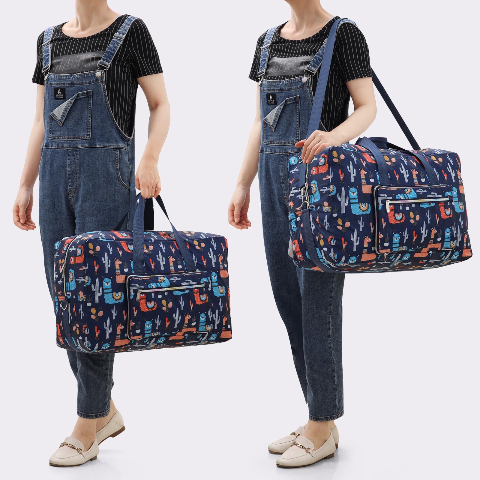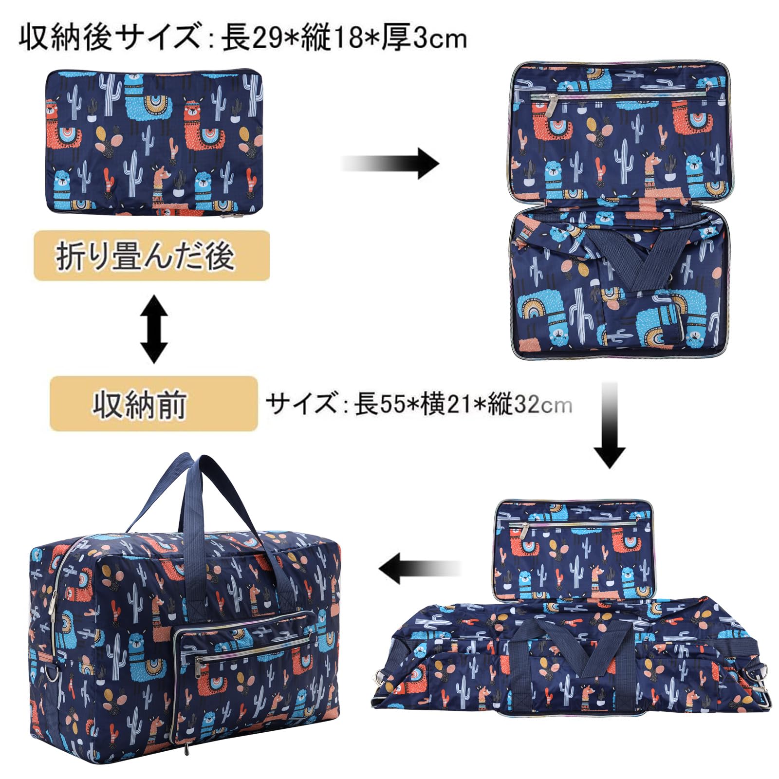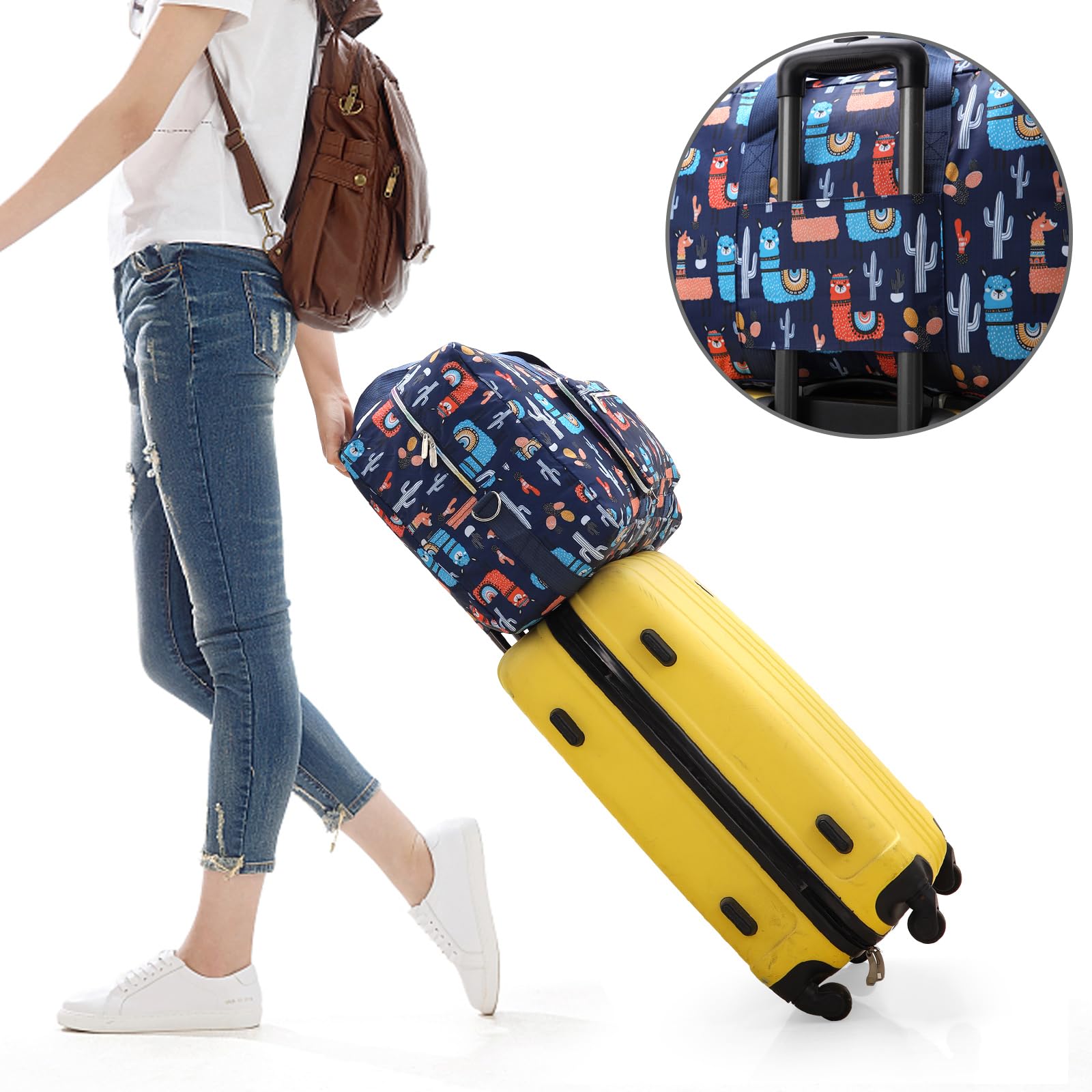 【 飛行機に持ち込める】スーツケースにつけられて便利です、移動している時もスーツケースからズレ落ちる心配がない。4つ目の飛行機の預け荷物に最適!可愛い柄が目を引く折りたたみ旅行バッグ、他の人の荷物バッグと混同する心配がなく、とても実用的です