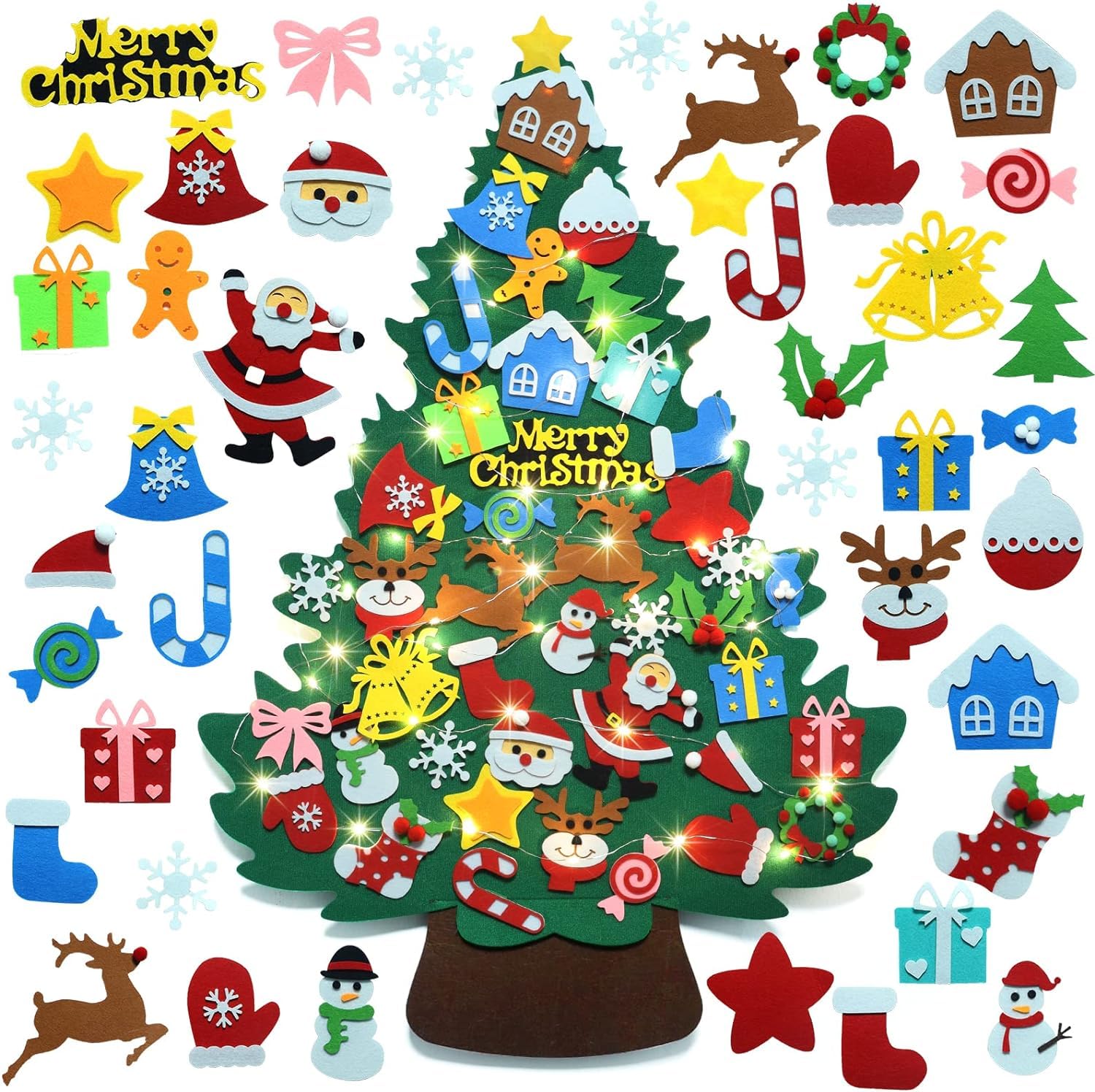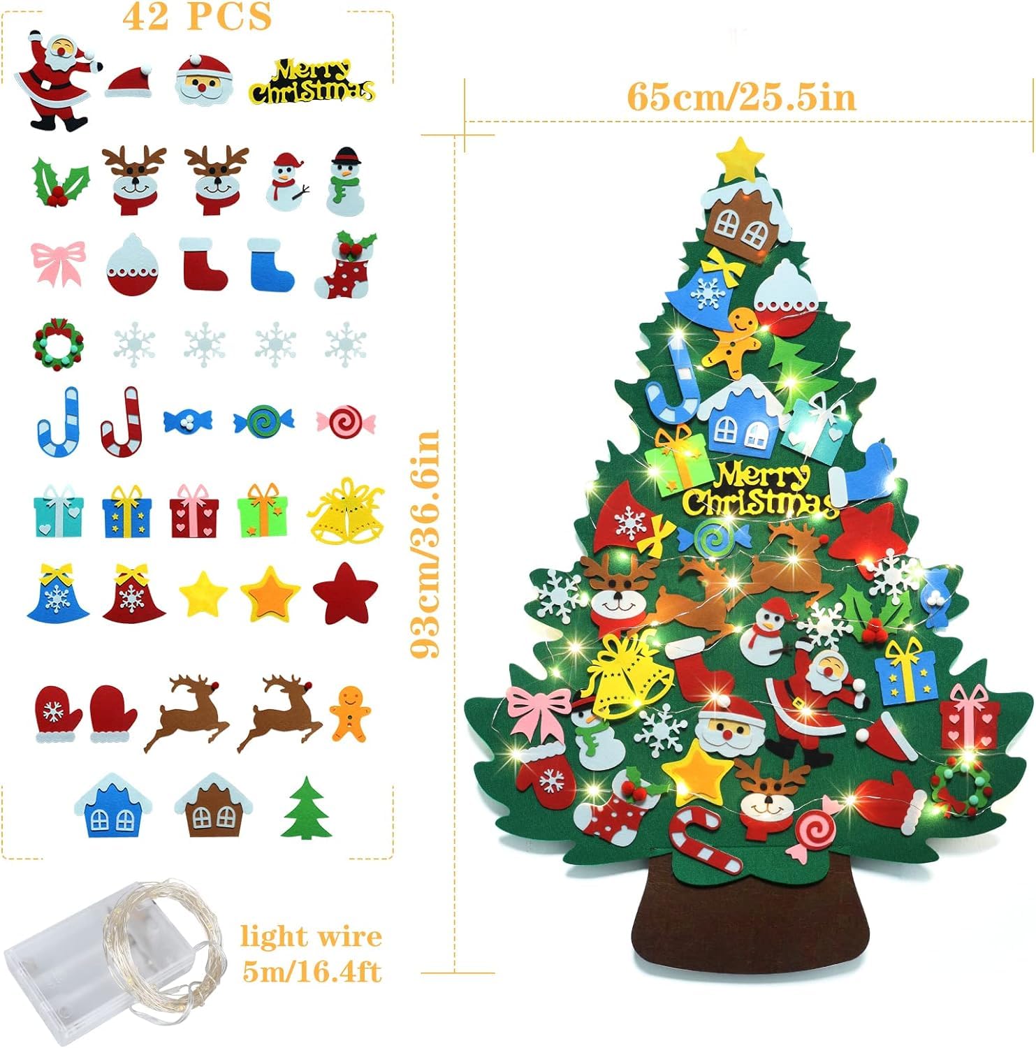 ??【パッケージ内容】フェルトのクリスマスツリー*1,LEDライト(単三電池3本必要、別途購入)*1、クリスマスツリー オーナメント42点セット(具体的な装飾パターンについては写真を参照)、用中なにか問題がありましたらお気軽にご連絡ください。