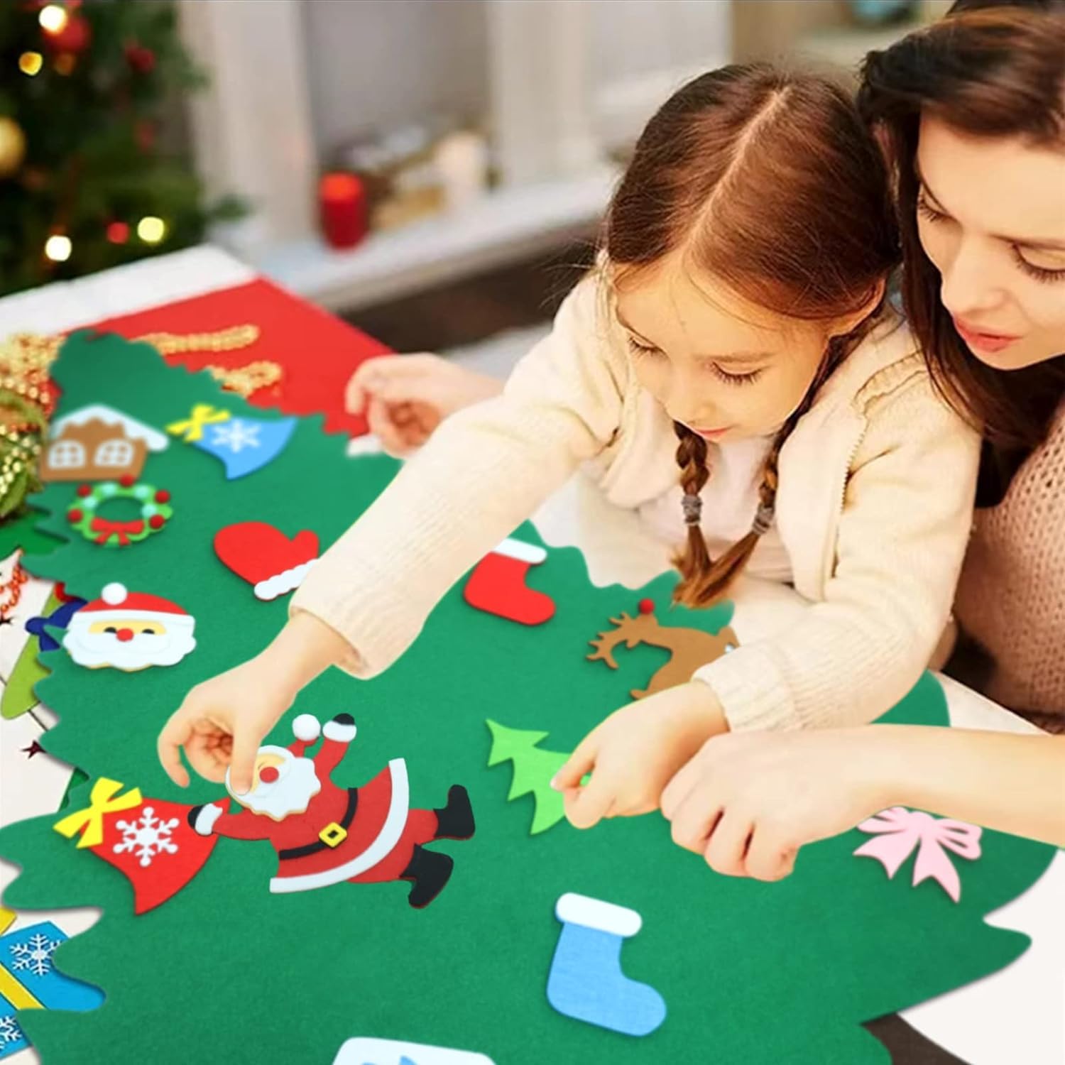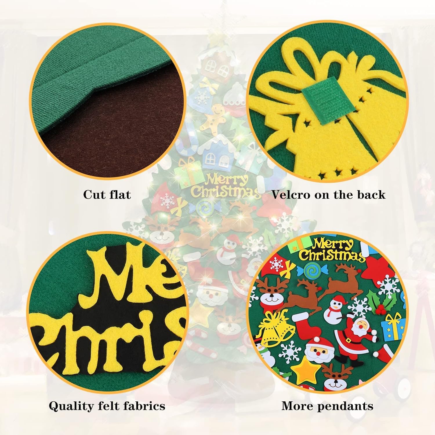 【努力特価】フェルト クリスマスツリー クリスマスオーナメント led 電飾つき 壁掛け クリスマスオーナメント クリスマスツリー マカロン タペストリー LEDイルミネーションライトクリスマスツリー 光る タペストリー オーナメントセットクリスマスツリー・タペストリー 親子でDIY 在宅 オーナメント42点セットクリスマスプレゼント