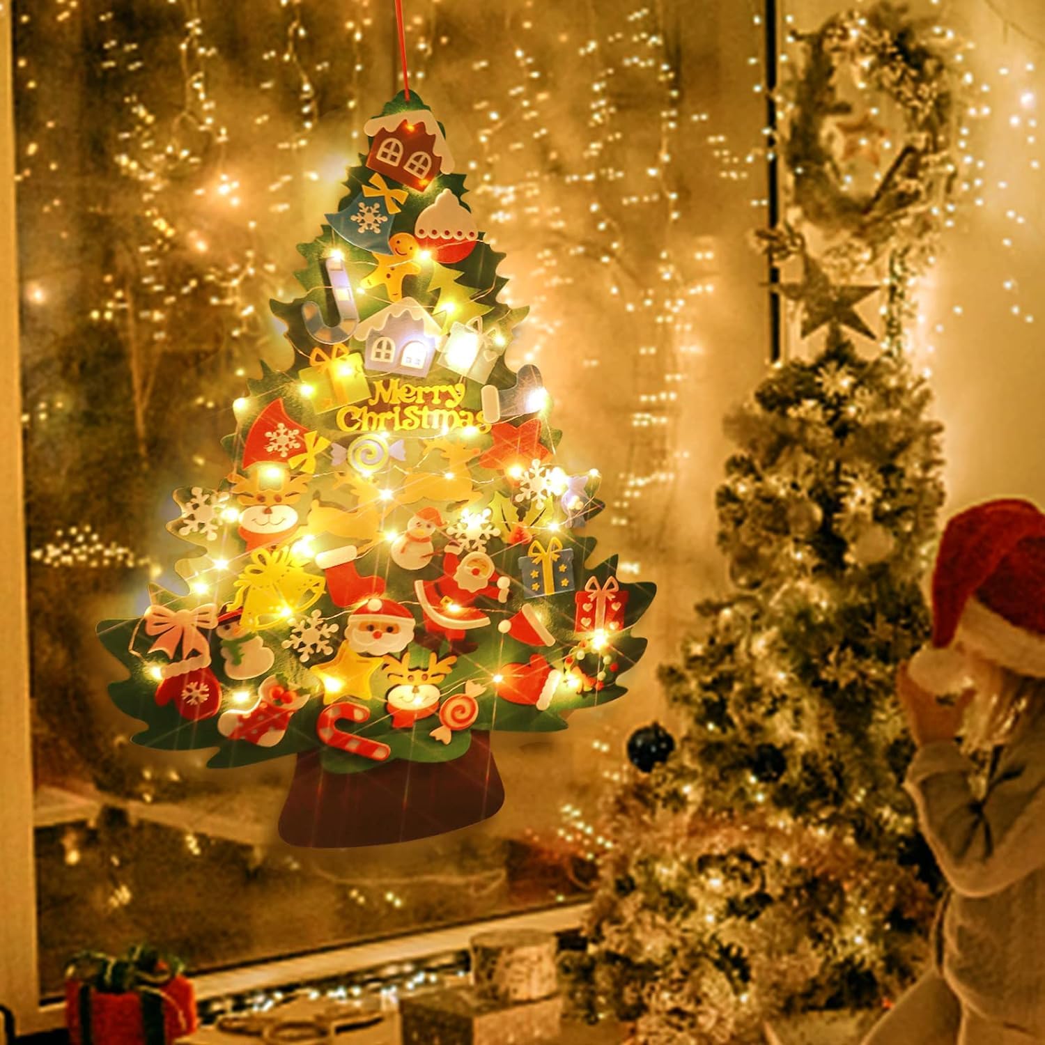 フェルト クリスマスツリー クリスマスオーナメント led 電飾つき 壁掛け クリスマスオーナメント クリスマスツリー マカロン タペストリー LEDイルミネーションライトクリスマスツリー 光る タペストリー オーナメントセットクリスマスツリー・タペストリー 親子でDIY 在宅 オーナメント42点セットクリスマスプレゼント