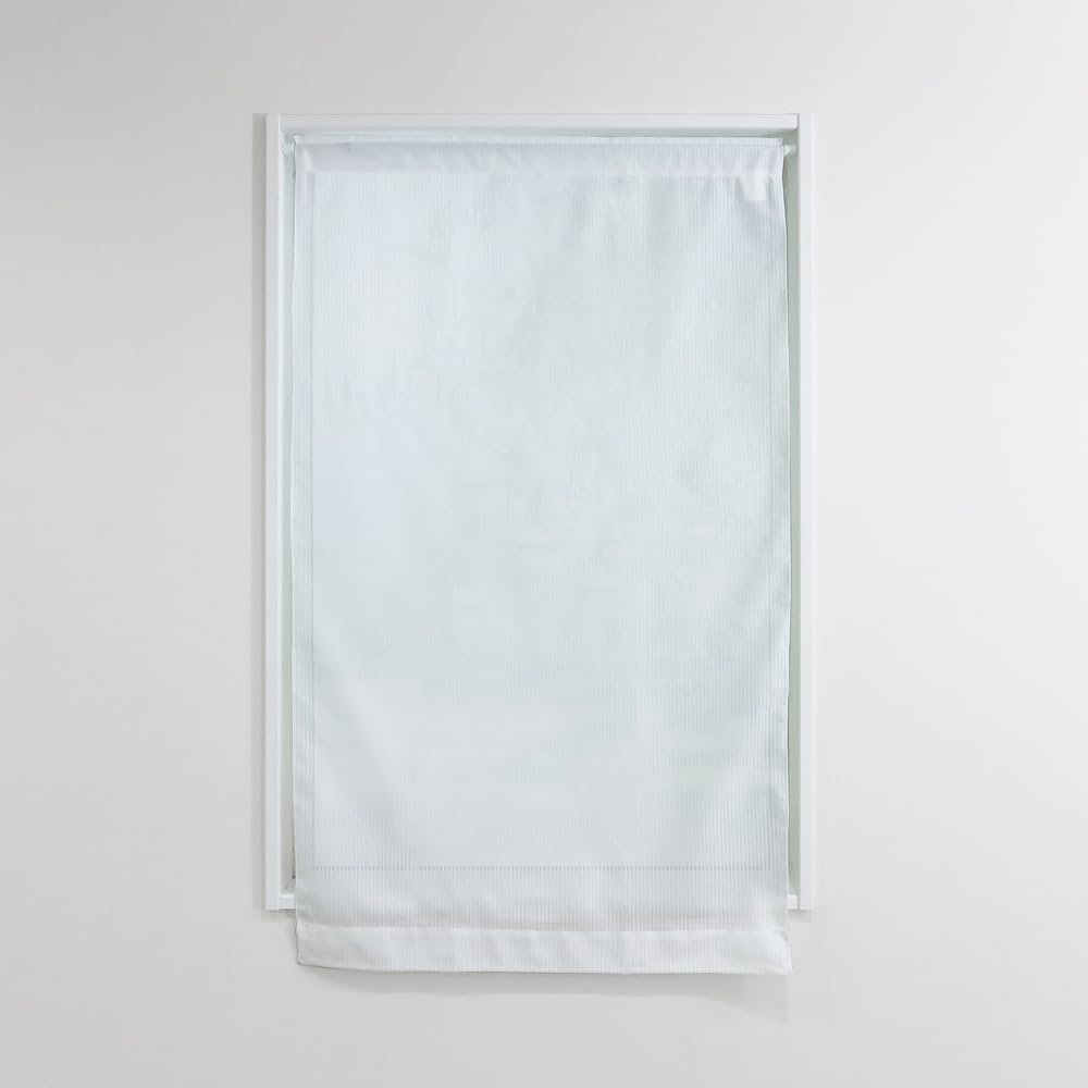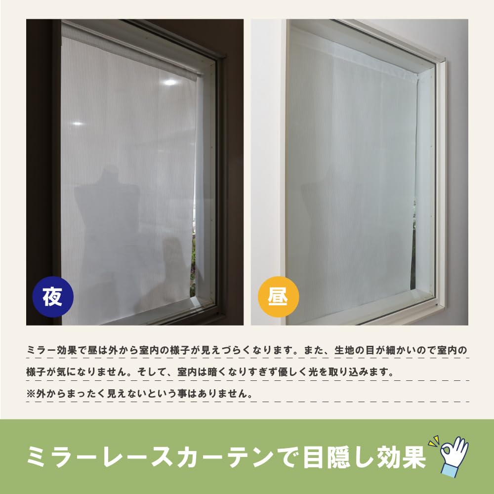 加栄レース(Kaei Lace) 小窓レースカーテン 【Lottery ロト】 28025 ホワイト(約70cm幅×約120cm丈)小窓 カフェカーテン 遮熱 断熱 UVカット 目隠し 北欧調 幾何柄 日本製 人気 エコリエ 小窓用ミラーレースカーテン