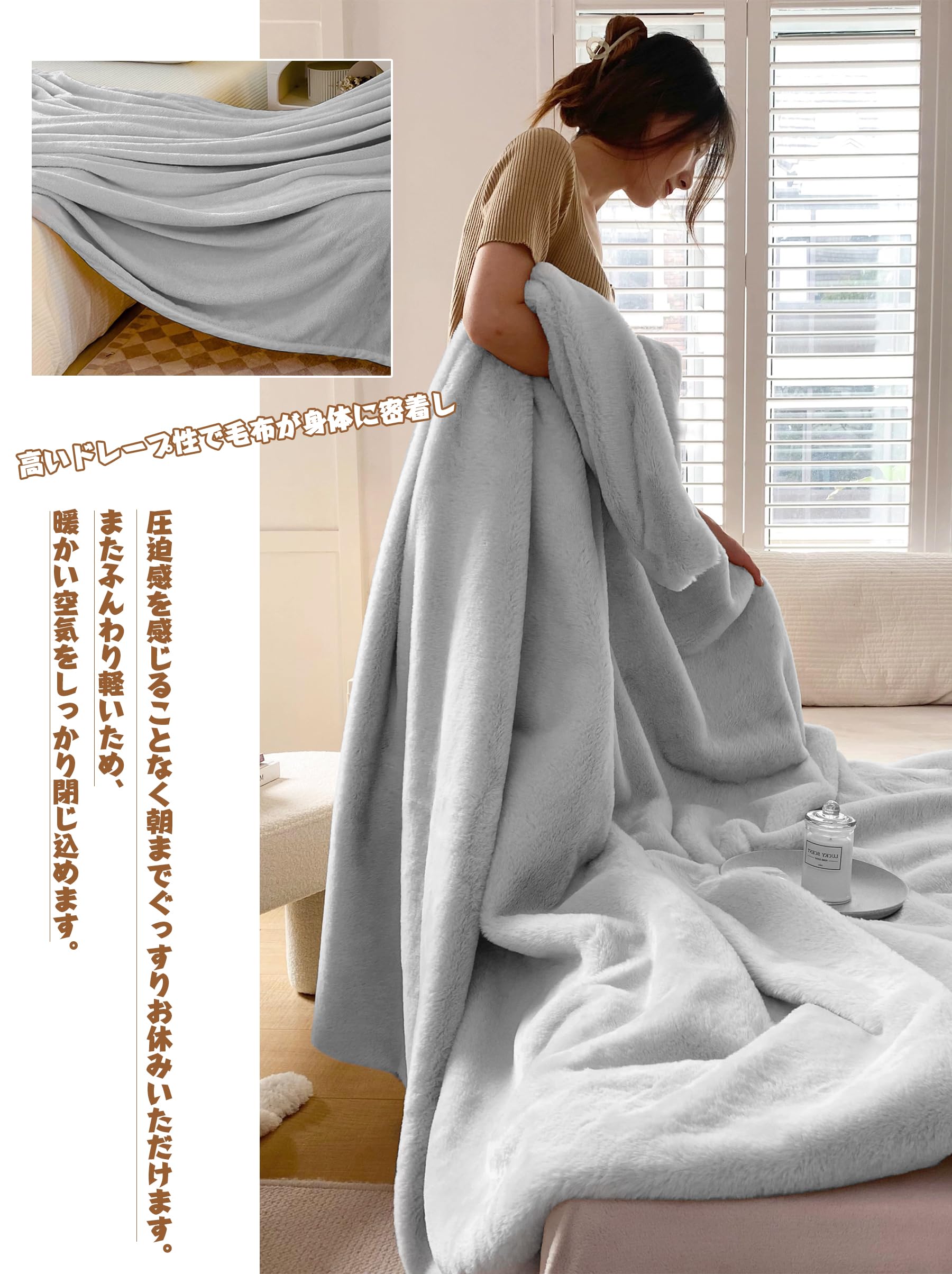 【軽くて暖かい】 本製品は1枚の毛布に仕上げ、圧迫感を与えないです。毛足に空気を多く包み込んでいるため、暖かい空気をしっかりと閉じ込め、蓄熱保温性に優れているのが特徴です。さらに軽量でご使用時の圧迫感を感じにくく、快適にご使用いいただけます。 【商品仕様】材質:100% ポリエステル サイズ:70*100cm/100*140CM / 140*200cm/160*200CM/ 180×200cm カラー:グレーピンク 、ブラック、カーキ、カルダモングリーン、グレージュ、ライトグレー、グレー、ネイビー
