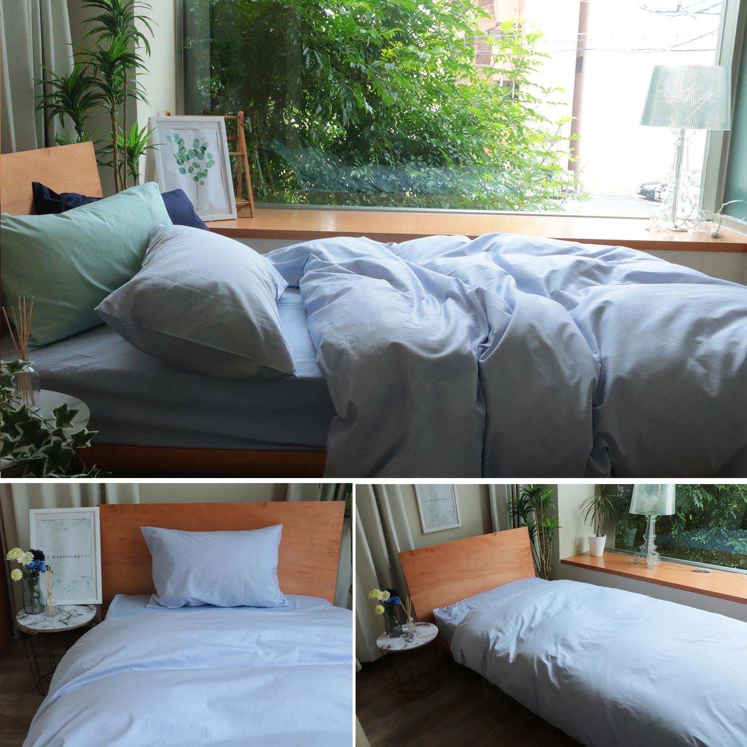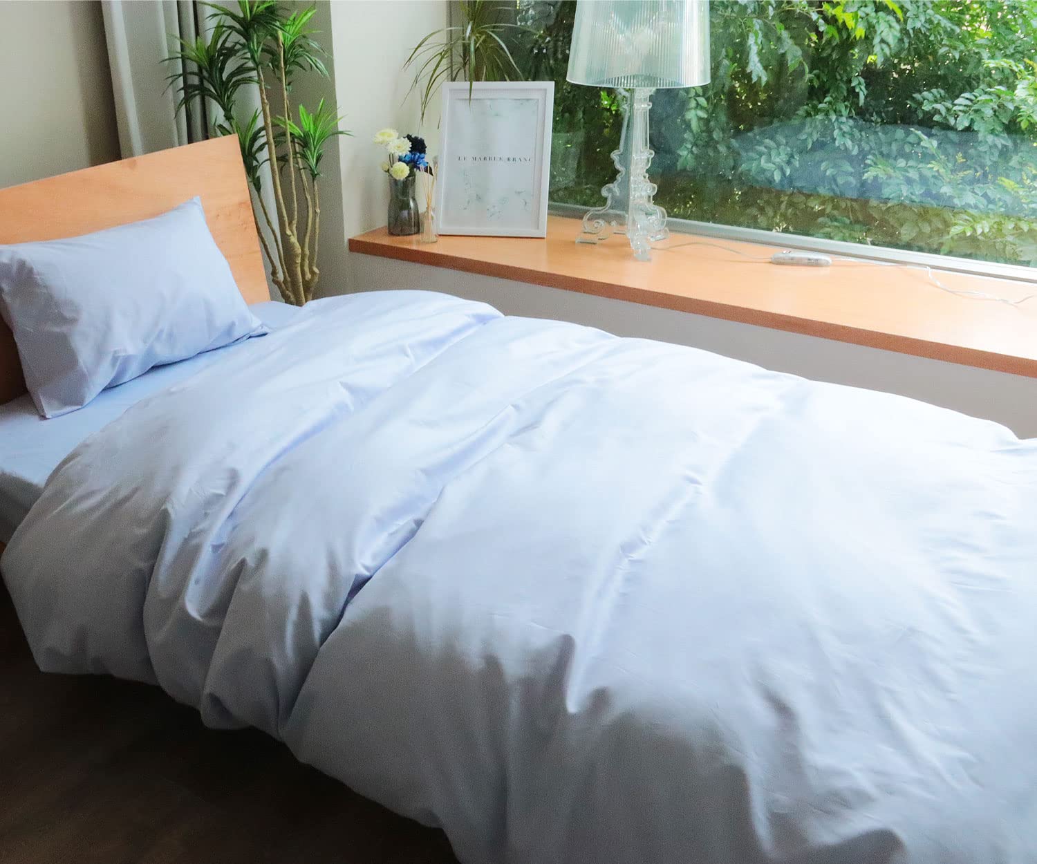 MORE 掛け布団カバー シングル 150x210cm 日本製 綿100% 無地 高密度200本 抗菌防臭加工 8ヶ所紐付き ホテル仕様 (シングル ブルー)