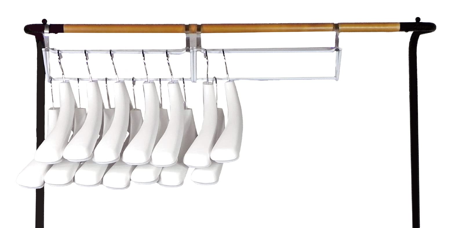 ●V字に構成された本体バーに洋服を段違いにして掛けることで、収納力を最大約1.5倍向上させます