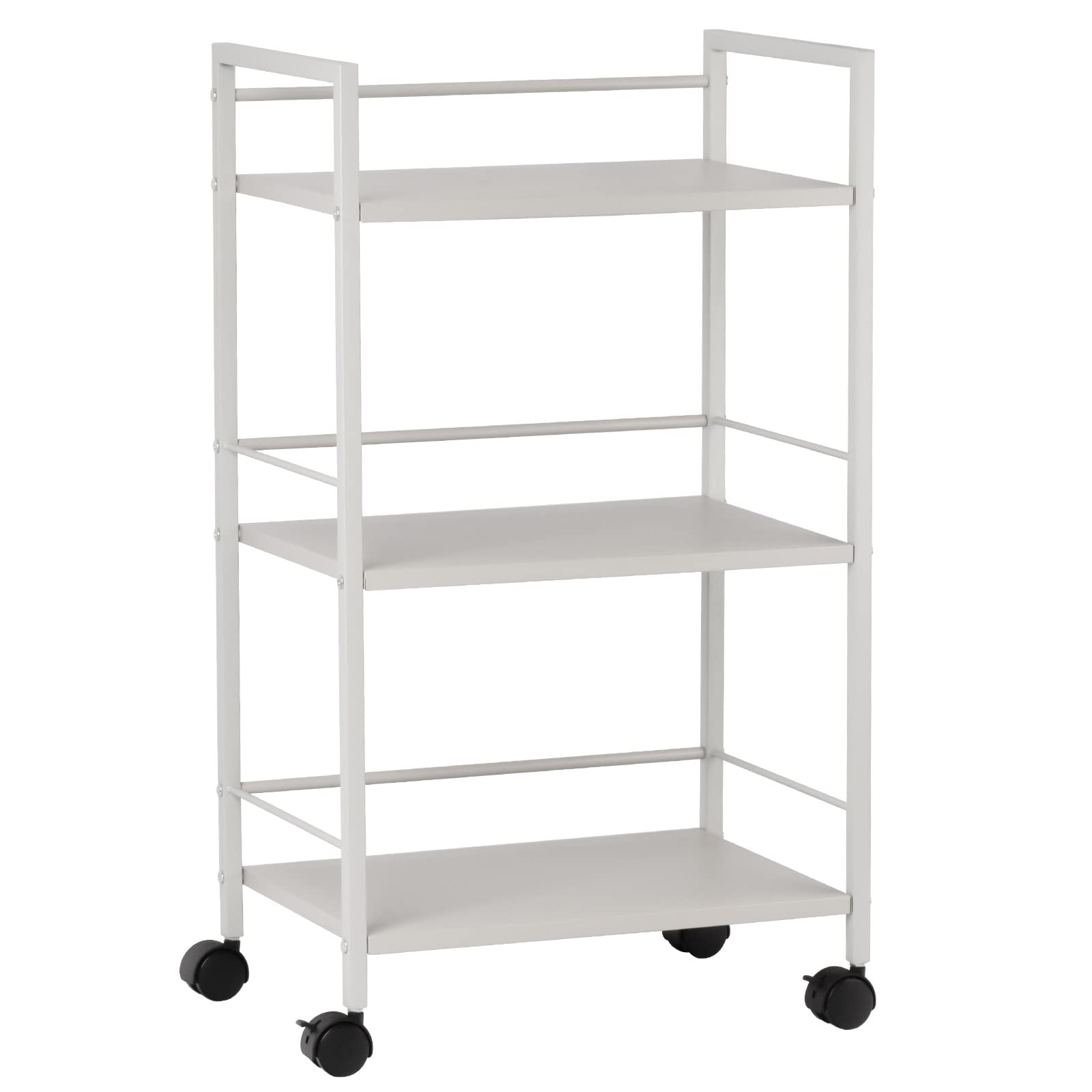 スチールラック 本体3.6kg 総耐荷重45kg 幅43×奥行30×高さ76cm 収納ワゴン プリンター台 PS5 横置き スタンド サイド収納 ストッパー付きキャスター 棚板1枚耐荷重15KG (グレー 3段)