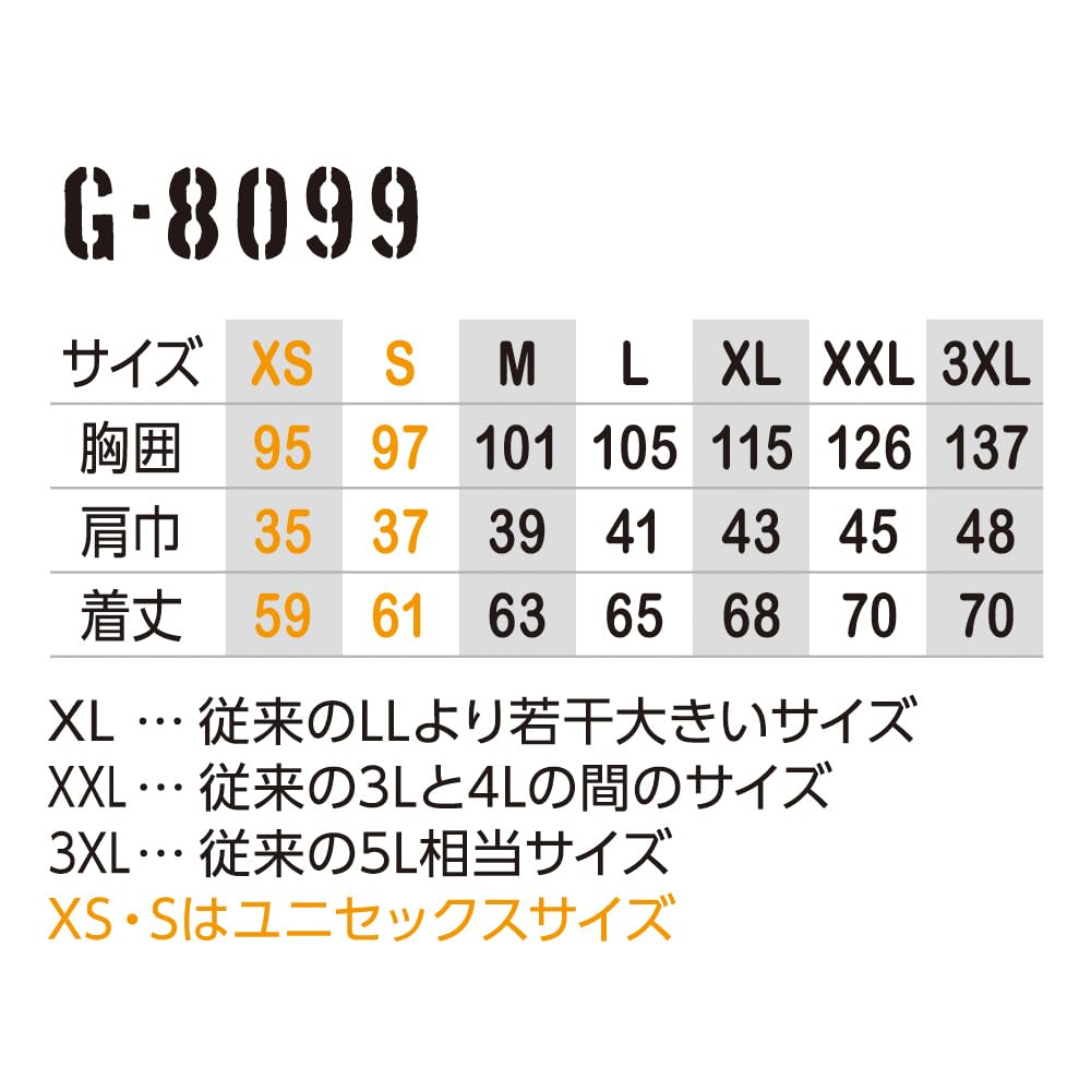 XXL…胸囲126cm/肩巾45cm/着丈70cm