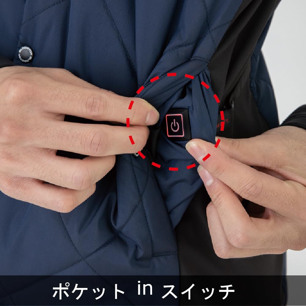 別売りのバッテリーを接続して電源ONでさらに暖かさをアシスト。