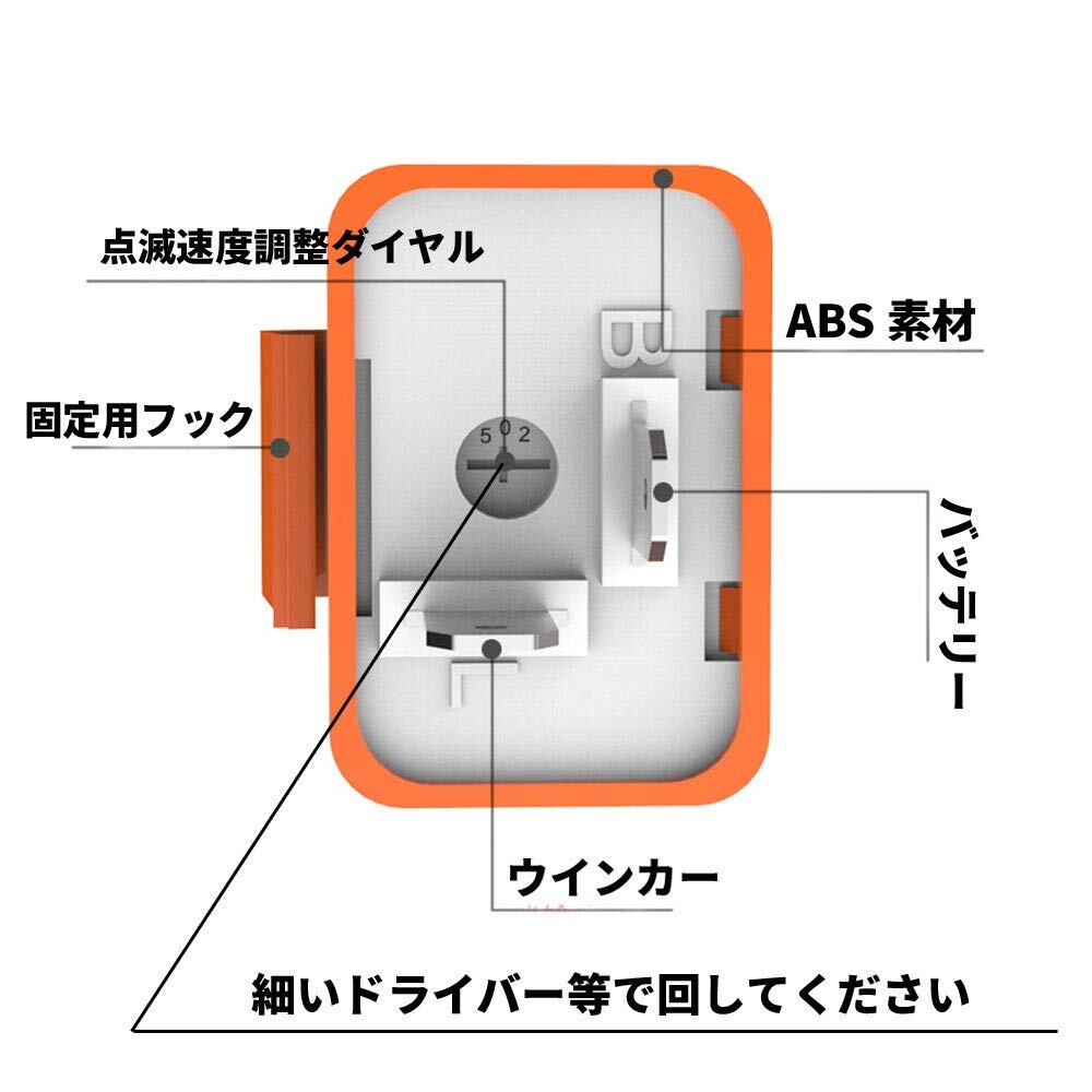 リレーは点滅速度調整機能付き、フラッシャー音無し、2ピンタイプ