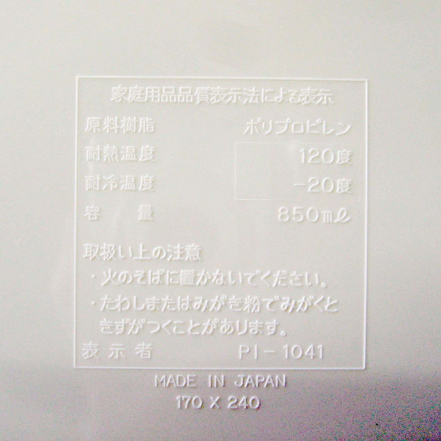 サイズ:最外寸 24x17x3.5cm / 底寸約 20x13.5cm / 容量850ml