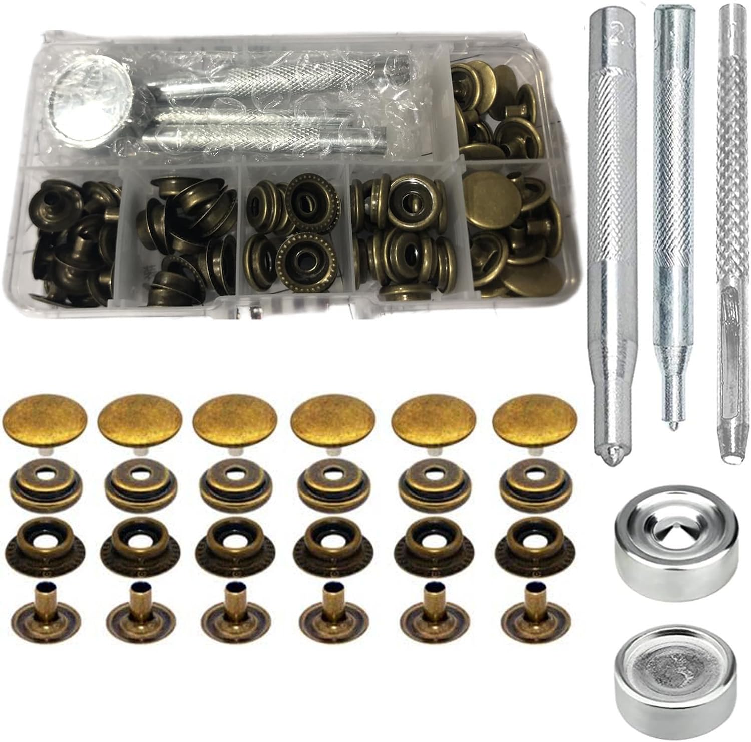【努力特価】サムコス ジャンパーホック ステンレス鋼メタルボタン アンティークゴールド 15mm 18セット レザークラフト 工具 4種類 手芸/家庭/裁縫用 DIY 手作り ハンドメイド (収納ケース付き)