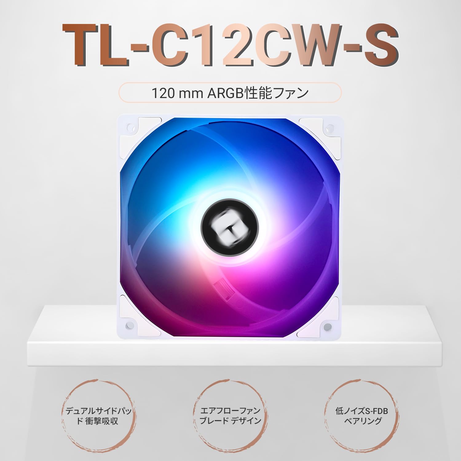 Thermalright TL-C12CW-S CPUファン 120mm ARGBケースクーラー、4ピンPWM静音コンピュータ、S-FDBベアリング付き、最大1500RPM冷却ファン