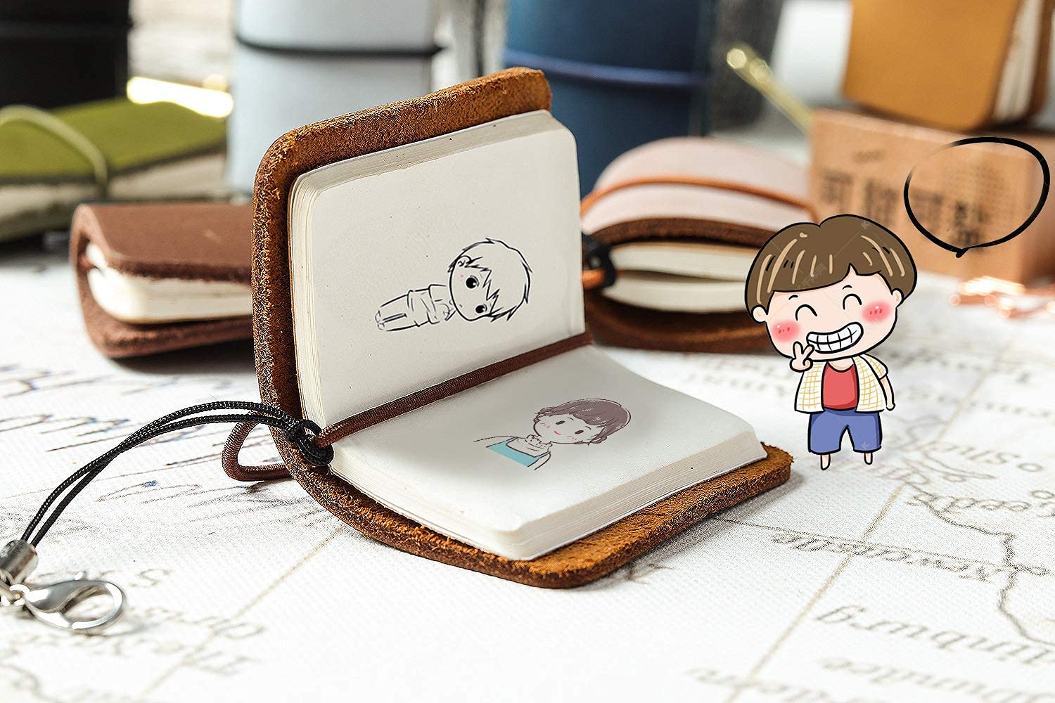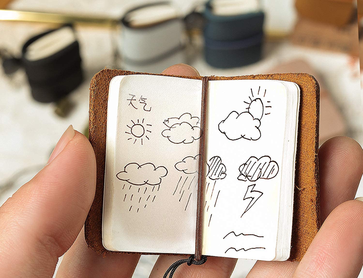 【新着特価】三個かわいい日記 スーパーミニ トラベラーズ レザーノート 本革 手帳 革製の手作りメモ帳 装飾