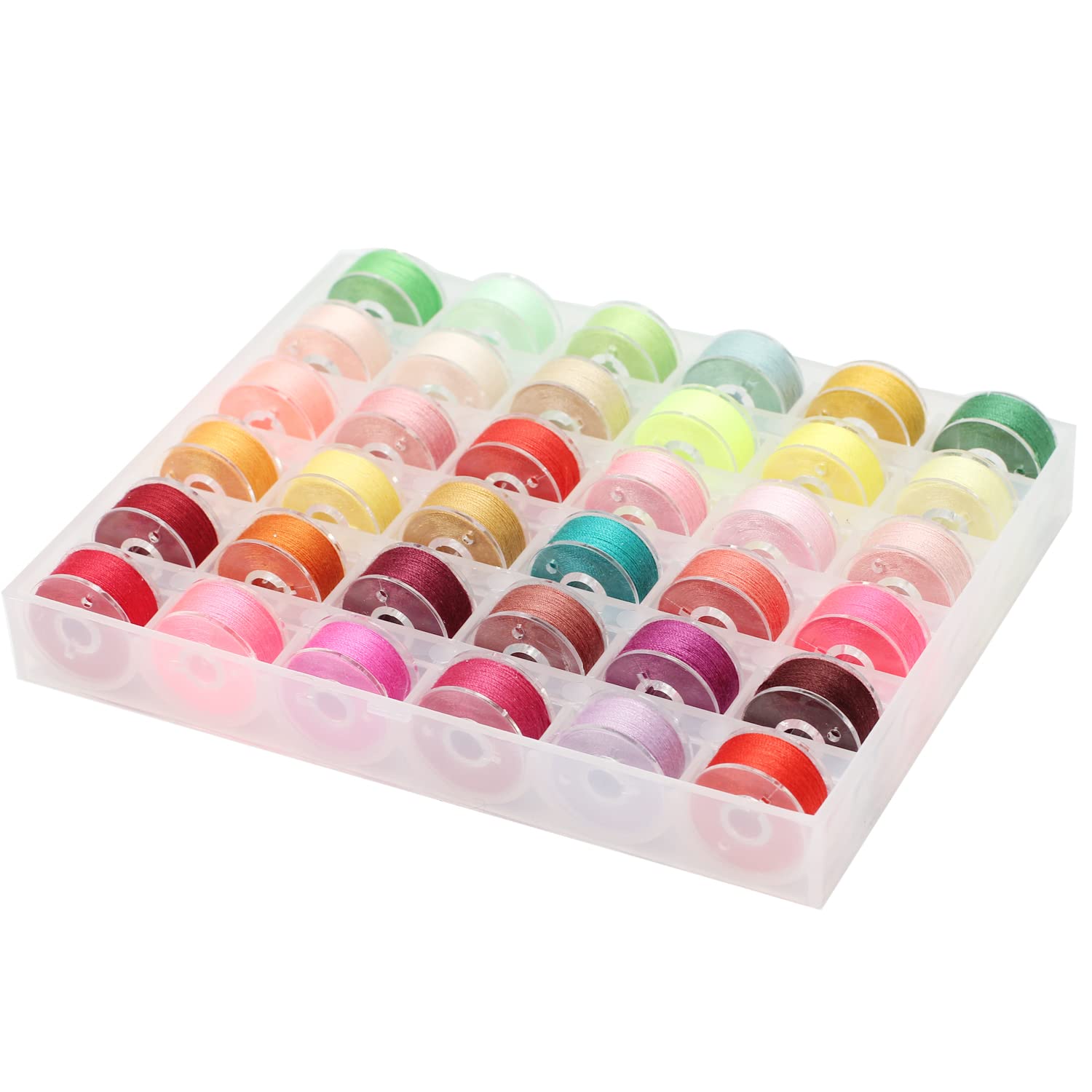 グリーン、イエロー、オレンジ、ピンク、レッド、ブラウンなどの明るい常備36色の糸セットで、様々なニーズを満たせ便利なボビンセットです。 収納箱も付きます。
