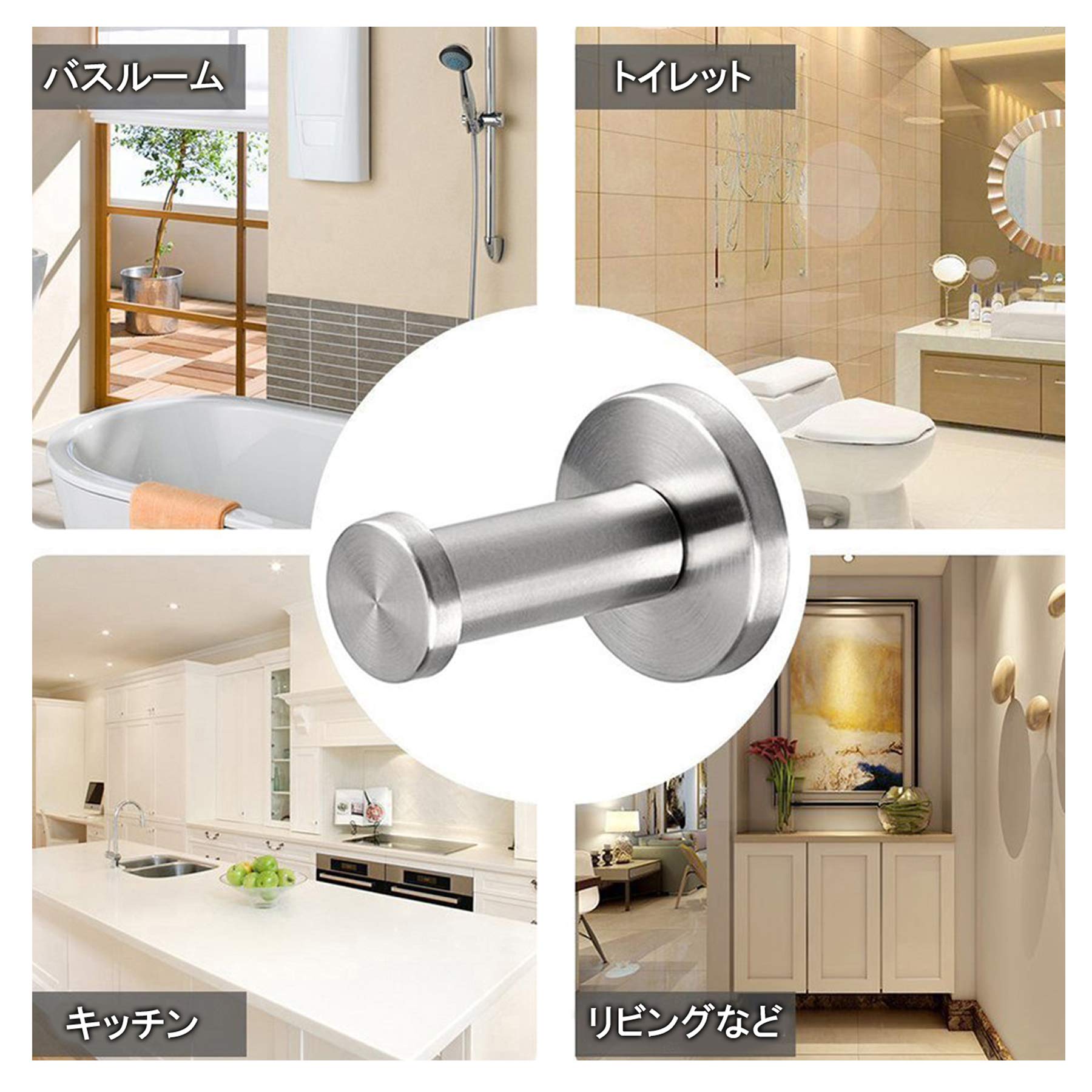 シンプルだけど飽きのこないデザイン。ご家庭ではリビング・寝室・クローゼット・キッチンはもちろんサビないステンレスは湿気の多い浴室・脱衣所・洗面所・トイレ、更には風雨にさらされる屋外での活躍も期待できます。更衣室・試着室・会社・学校・部活動の部室・飲食店・居酒屋・美容院などでもあなたのアイデア次第。ハンガーとセットで使用すればコート等も余裕で掛けれるくらいしっかりとしたつくり。厚めの短いネジで支えるのではなく、むしろ細目の長いネジで3点に荷重を分散させるのが耐荷重5kgの秘密です。細目のネジなので撤去後も跡が残りにくいのが特徴です。