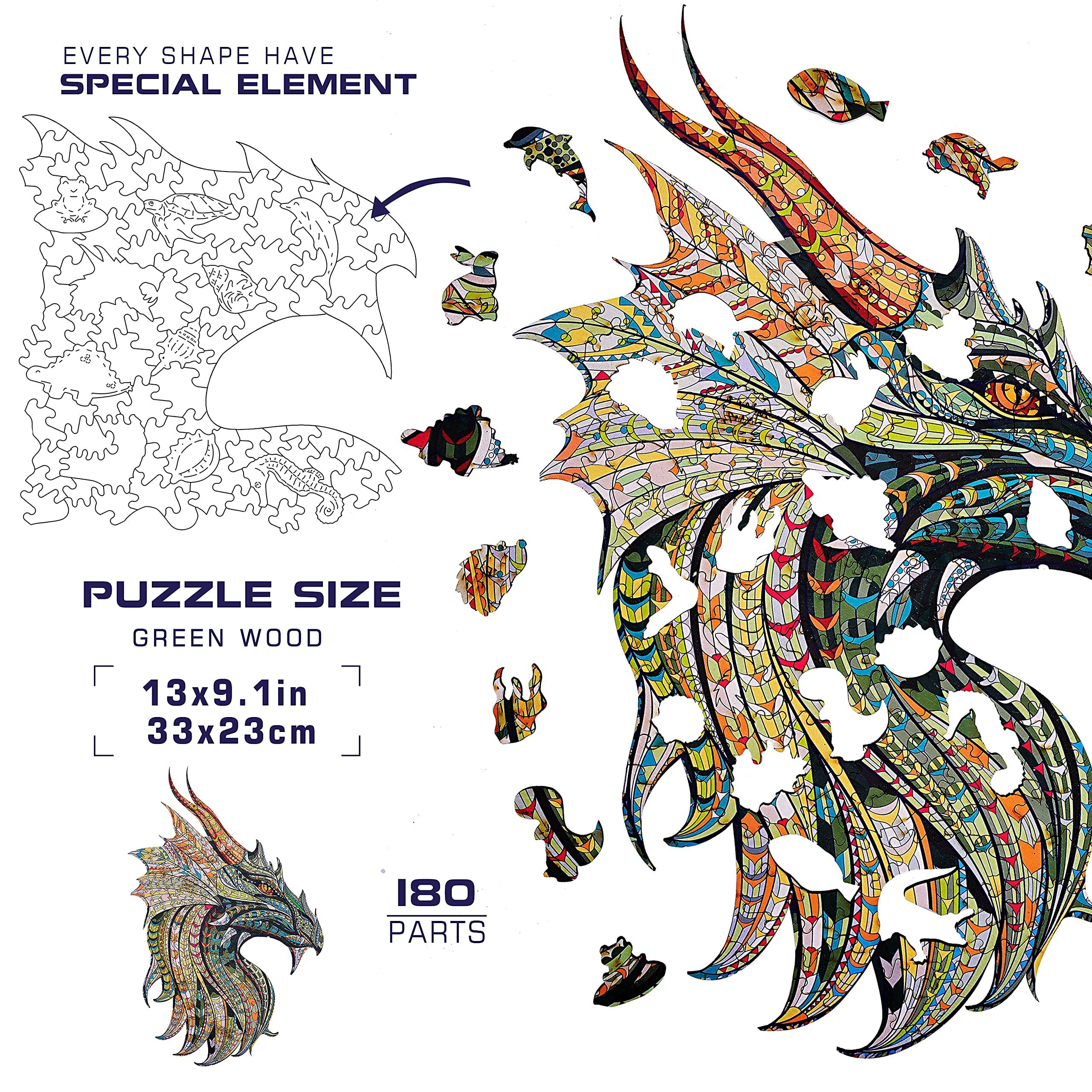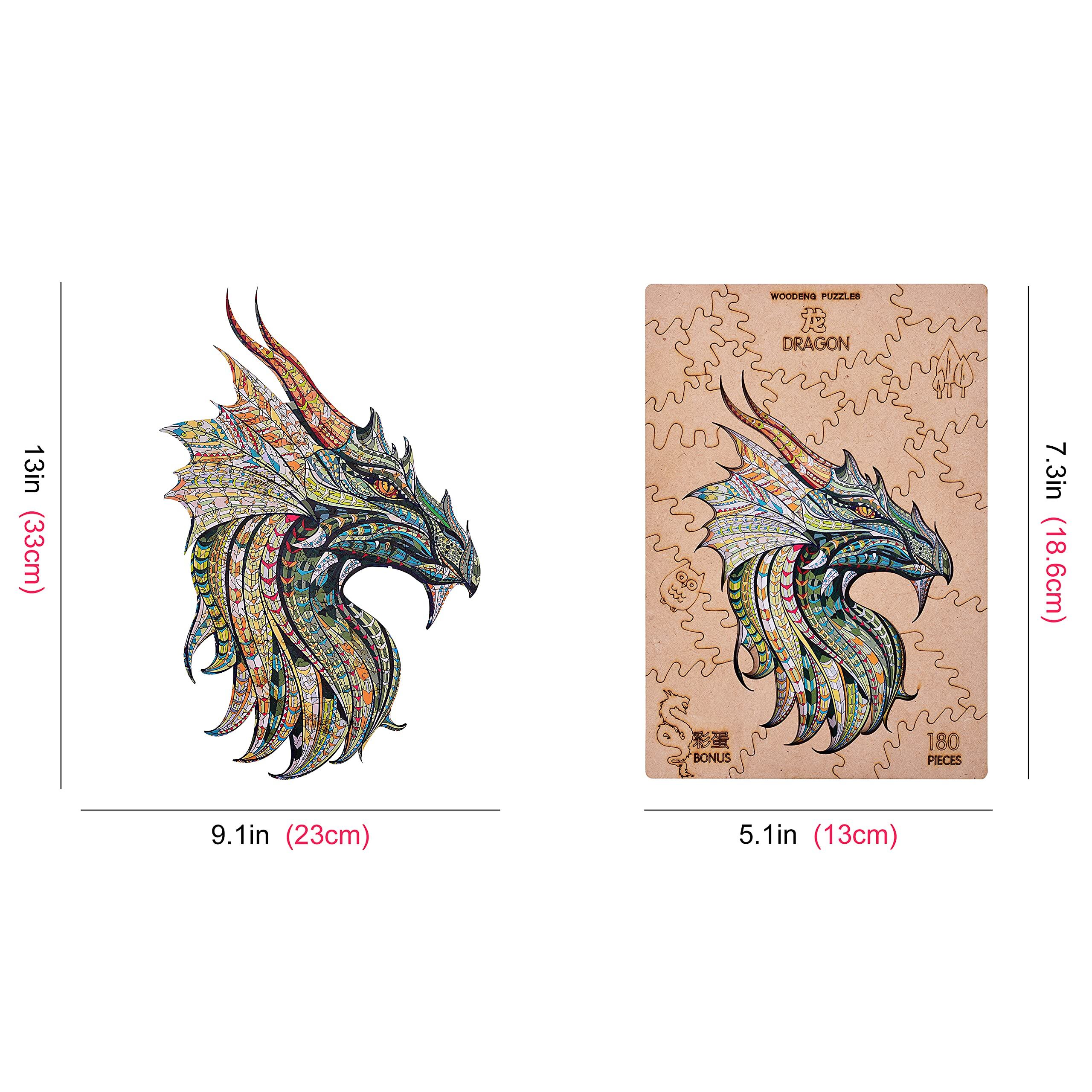 木製パズルジグソーパズル、知育おもちゃ動物の形青龍、23x33 cm(9x13 inches)、180錠、青少年と大人のための最高の贈り物、ユニークな形のパズル