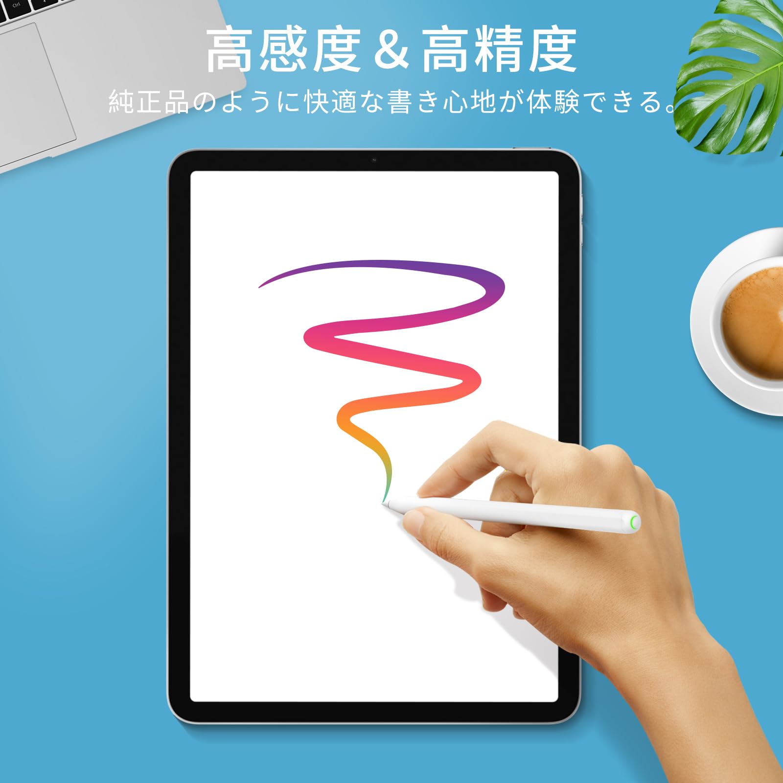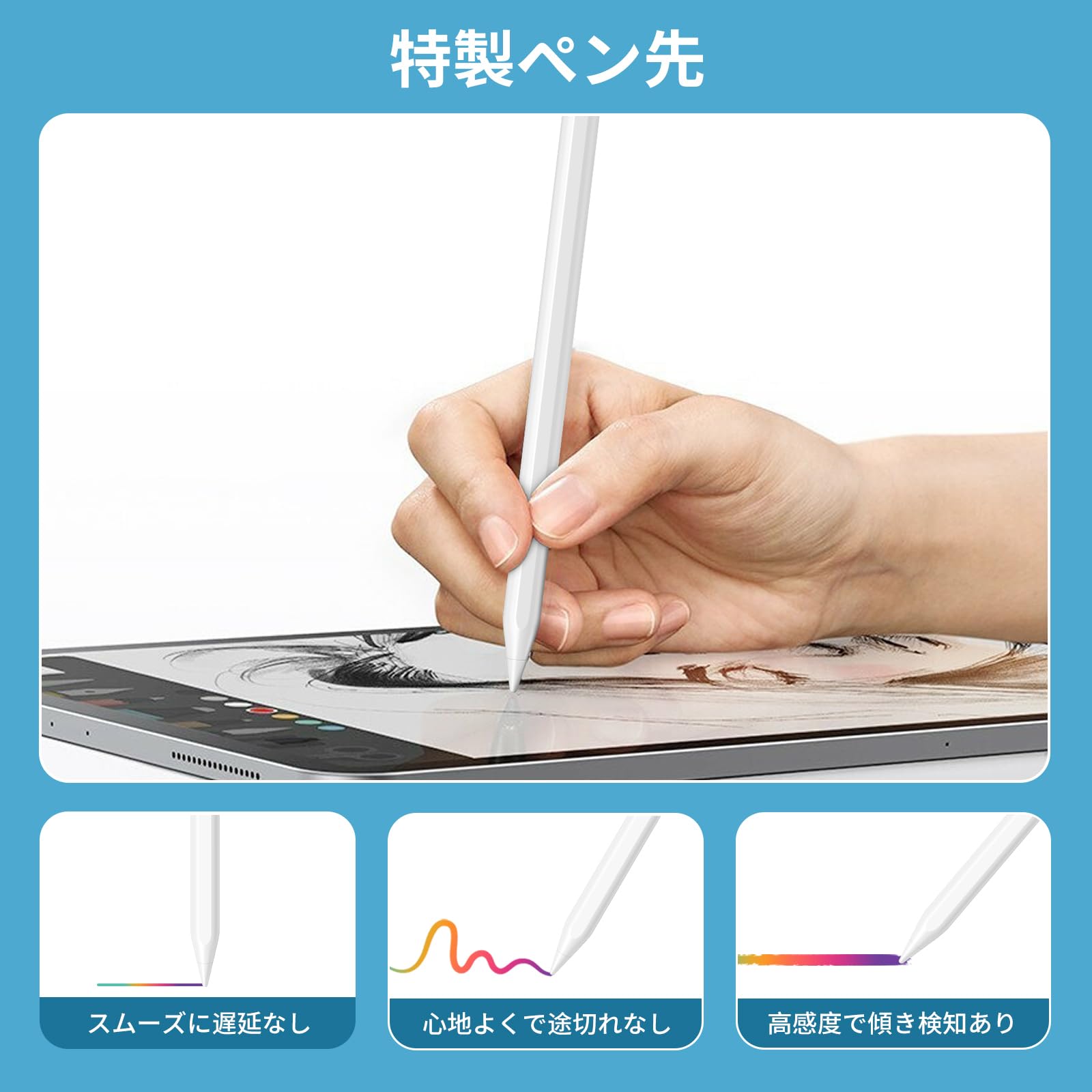 【高感度と高精度】ペン先が高感度で、遅延、途切れなどもないで心地よく書けます。高精度で傾く角度によって線の太さを変えられます。