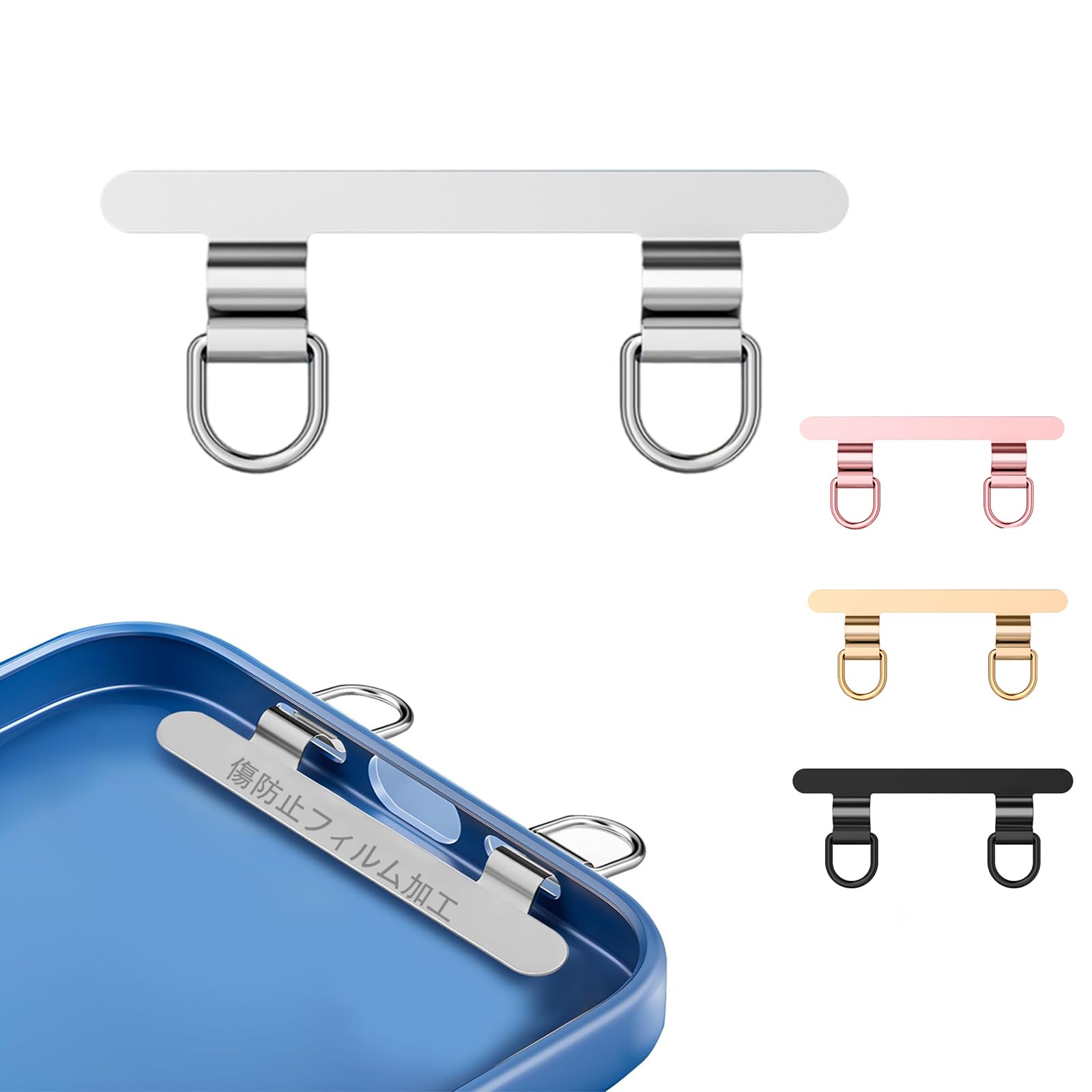 [GUYCOS] スマホ ストラップホルダー 【2口タイプ・浮きにくい湾曲設計・傷防止フィルム付き】 ステンレス製 0.4mmの超薄型 金属ストラップホルダー 携帯ストラップホルダー タグパッチ 金属製で丈夫 10kgまでの荷重量 スマホケースに挟む