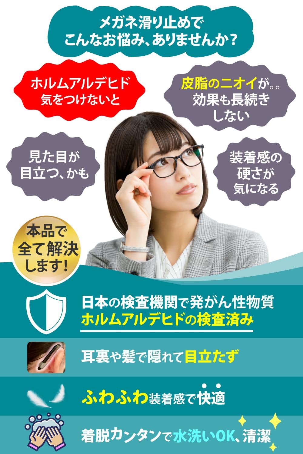 滑防止対策でずれ落ち防止グッズが欲しい。でも、メガネバンドの締め付けは気になる。そんな方にも最適♪
