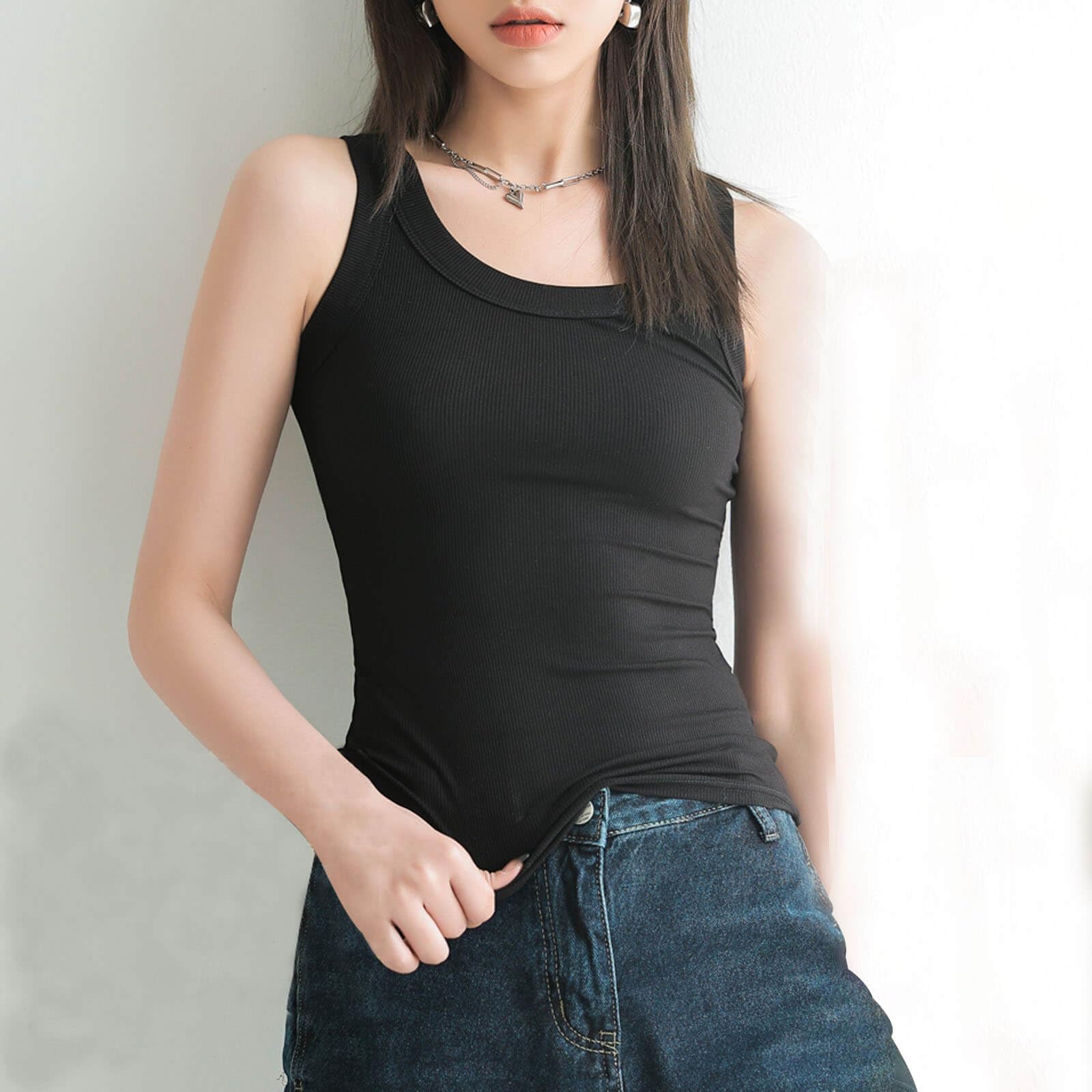 伸縮性と快適性:リブ素材の高い伸縮性により、動きやすく締め付け感のない快適な着心地。タンクトップ レディース 肌着として日常使いにも最適です