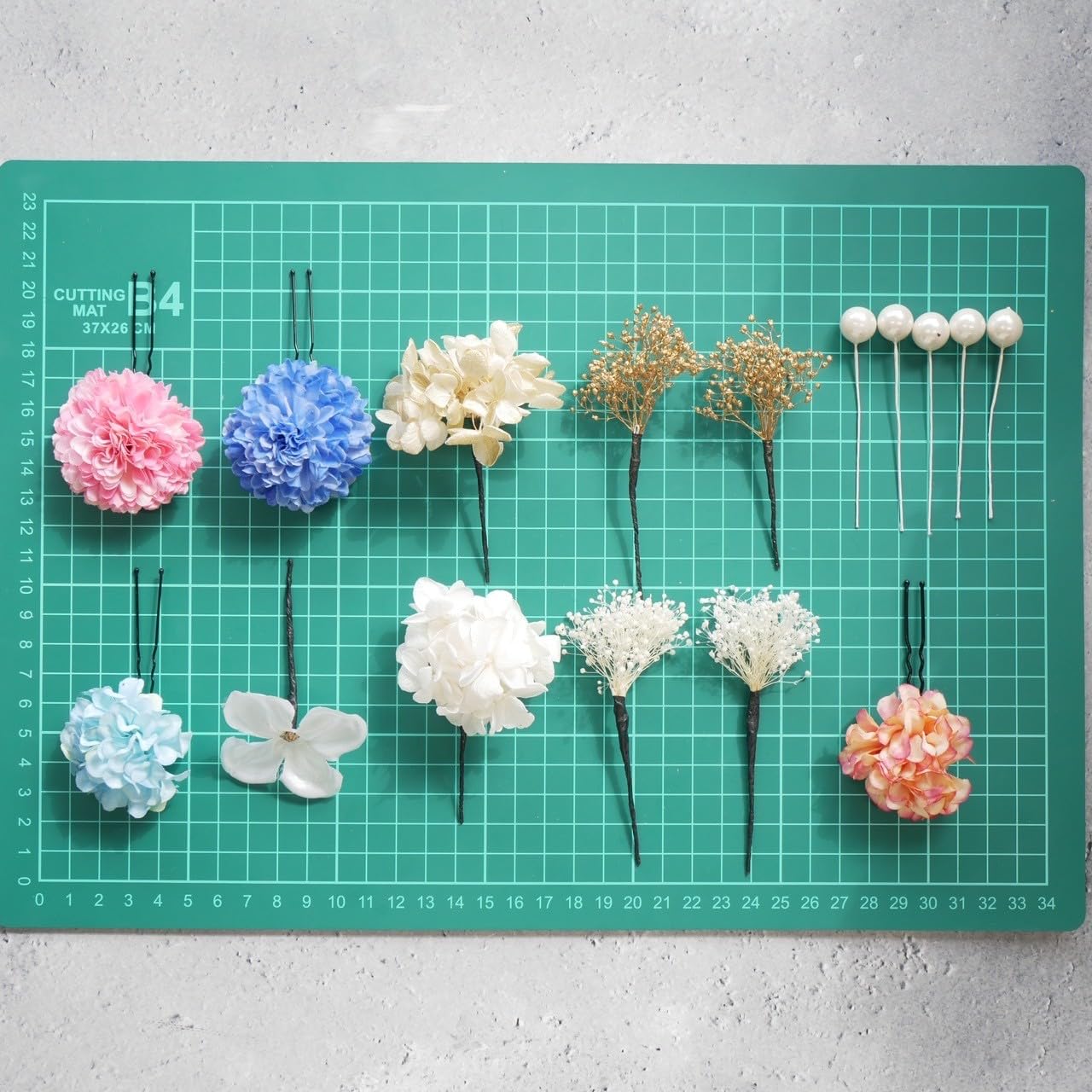 ??パーツ詳細??マム 4パーツ、ドライフラワー 6パーツ、パールピック (5本)、造花小花1パーツ