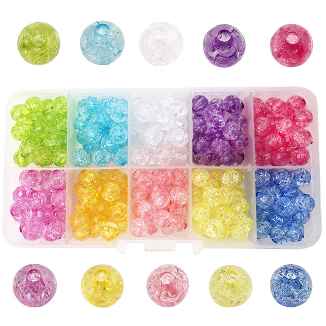 カラフルな10色セットのアクリル樹脂ビーズ。アクセサリークラフト など様々な手芸、DIY、工芸品の作成に役立ちます。