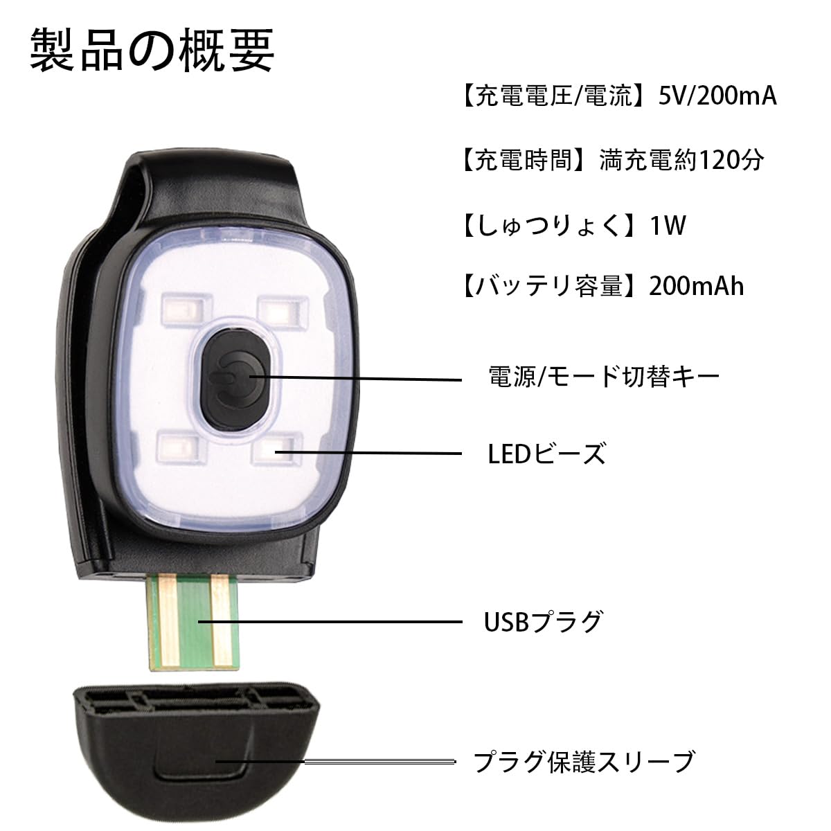 ランニングライト 2個入 LEDクリップライト USB 充電式 3種類の照明モード 夜間照明 発光 軽量 ランニングウォーキングライト ジョギング ハイキング キャンプ 犬の散歩に (2個入)