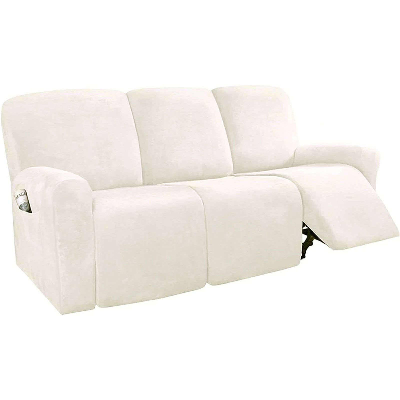 ストレッチ ベルベット リクライニングソファーカバー 3人掛け 8-分割タイプ 付 サイドポケッ 電動 リクライニングチェア ソファーカバー 滑り止め に適用する 子 ペット-象牙-3人掛け