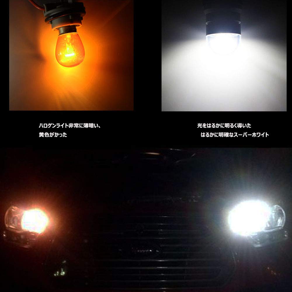 【高輝度・高爆光】高輝度 3030SMD, 透明なのPCカバー、 それはライトをより柔らかく、まばゆくなくすることができる,高爆光効果にアップします。全方位照射、昼間の環境は高い視認性をあります。純正ハロゲン球より明るいのに省エネ、明るさは3倍に大幅アップしました。