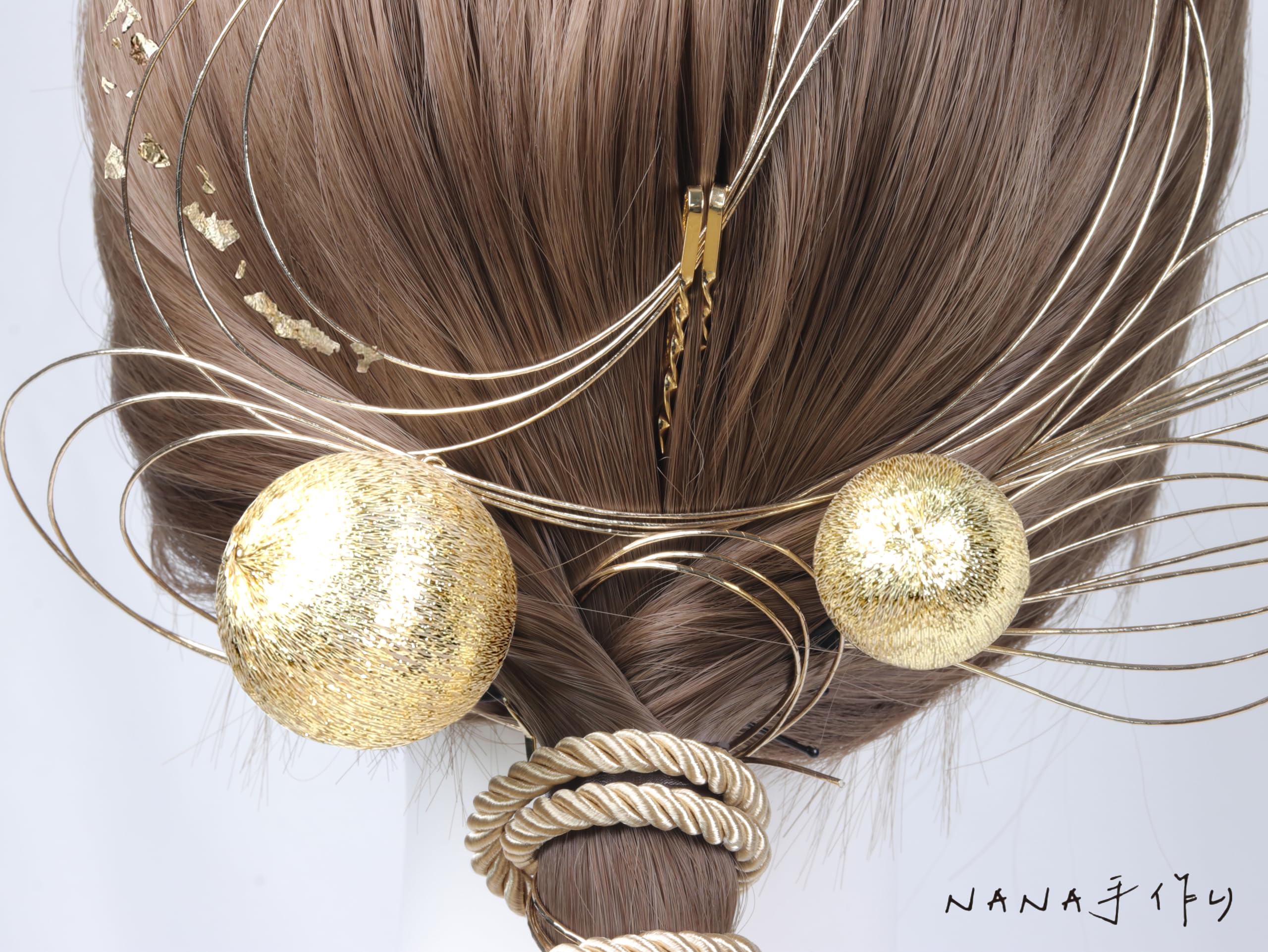 [NANA手作り]髪飾り 和玉 水引髪飾り ゴールド 紐装飾 金箔 卒業式 入園式 入学式 夏祭り 花火 浴衣 七五三髪飾り 成人式髪飾り 振袖髪飾り