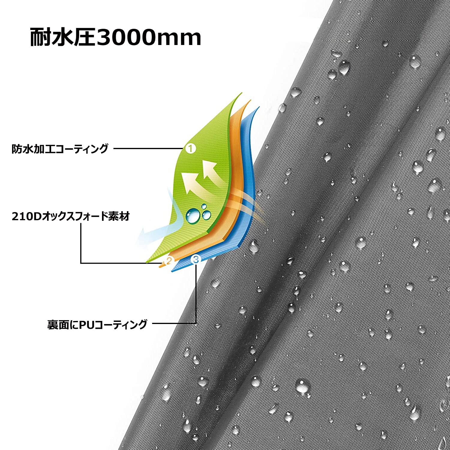 【210Dオックスフォード素材】テントシートは厚手の「210Dオックスフォード」を採用し、ブルーシートのようにカサカサしにくい、厚くて耐摩耗性に優れてます。