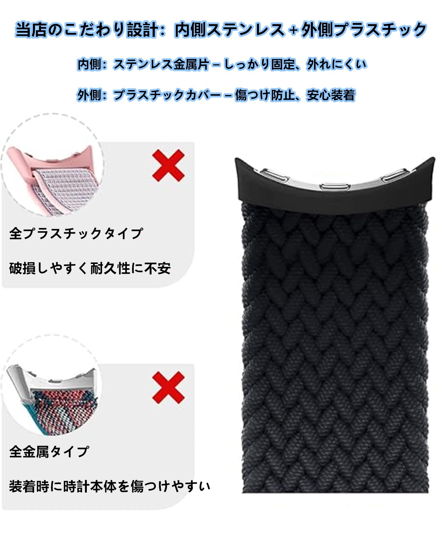 強化された金属ラグ:最新設計のプラスチック製コネクターと内部にステンレススチール製ラグを採用し、Pixel Watch 本体にしっかりと固定されるよう設計。振動時のガタつきも防止します。