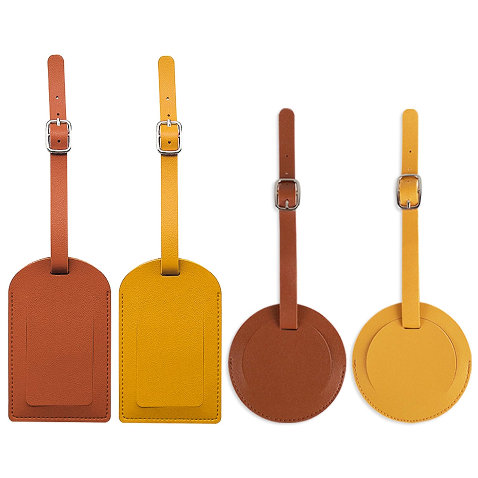 【多機能セット】丸型ラゲッジタグ2枚、長方形ラゲッジタグ2枚のセットです。組み合わせの多様性で、あなたの荷物を一目で見つけられます。