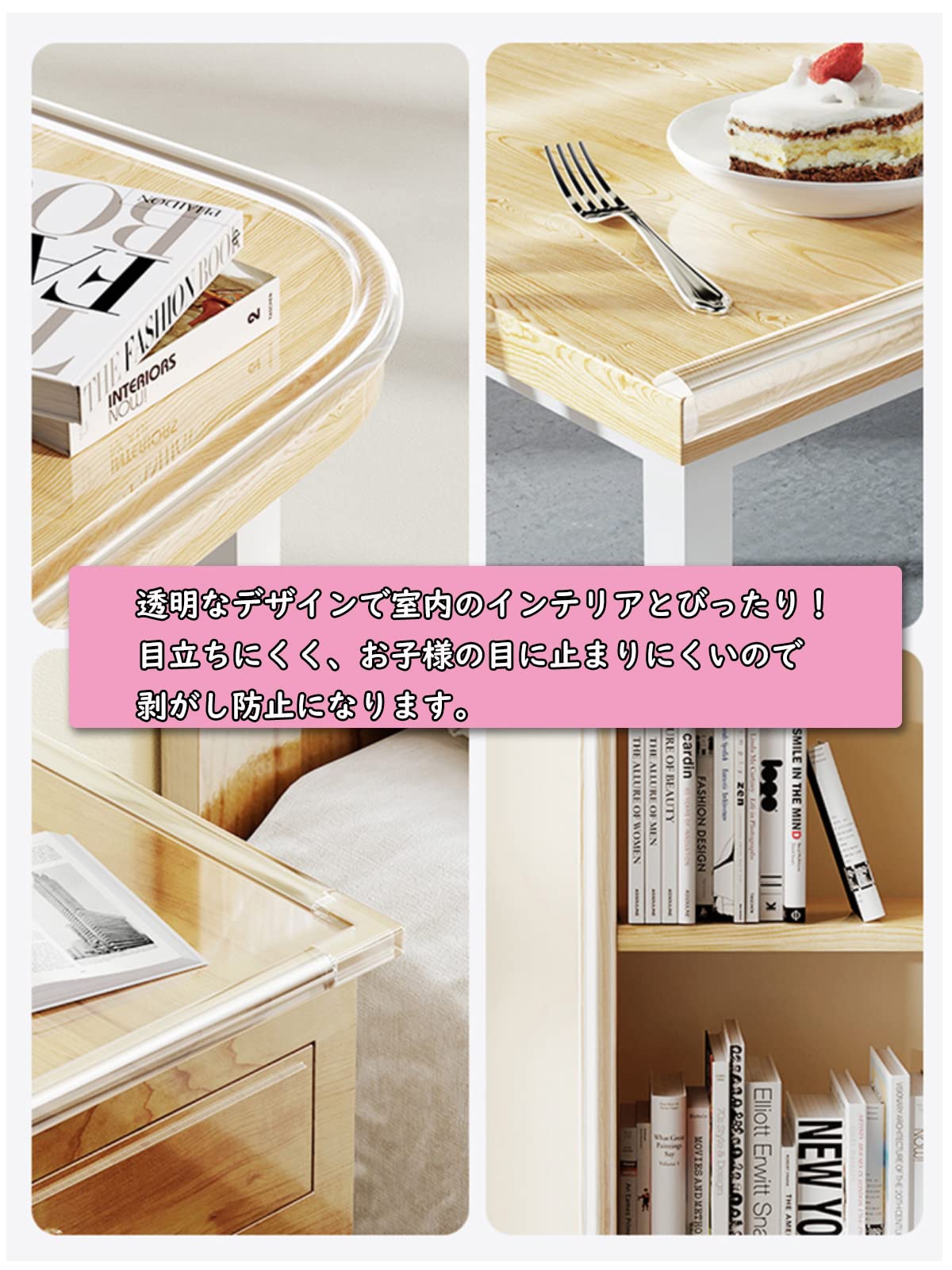 無毒安全エコ素材でクッション性がある柔らかい素材を採用し、子供安全、安心なお住まいの為アイテムです。お母さんたち安心にご利用させるコーナーパッドです。透明なデザインで室内のインテリアとびったり!目立ちにくく、お子様の目に止まりにくいので剥がし防止になります。
