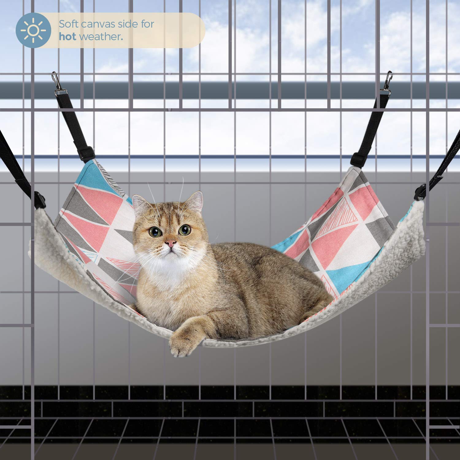 ComSaf 猫 ハンモック ベット ゲージ用 昼寝 夏冬両用 ヒモ調整可能 耐荷重10KG 56x48cm 子猫成猫適用(小さい三角形)
